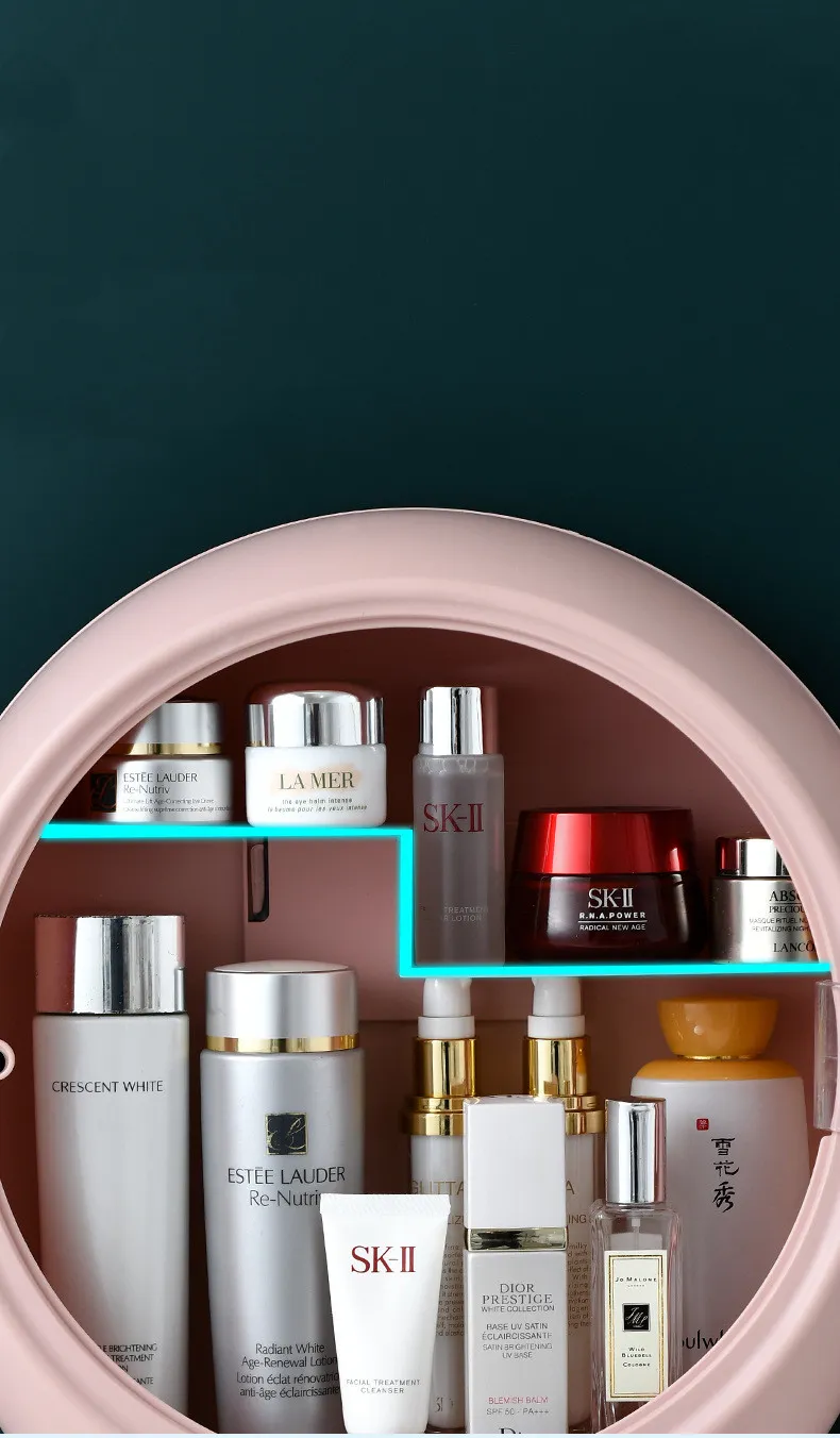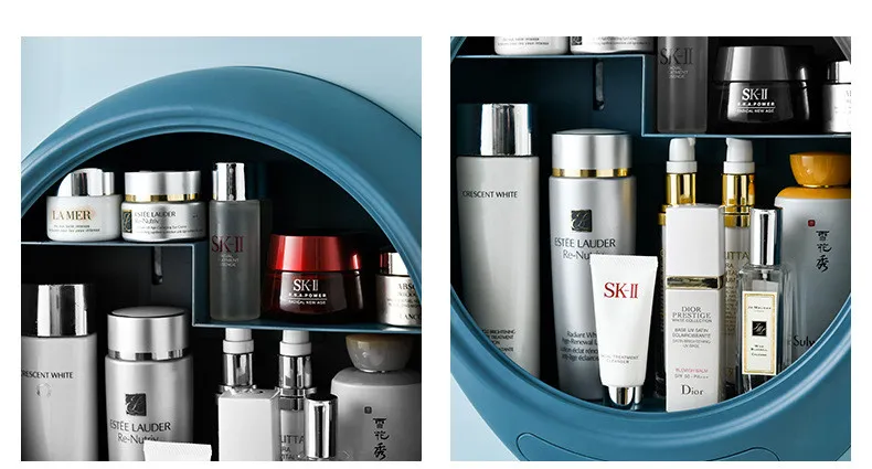The Dustproof and Waterproof Skin Care Product Storage Rack is designed with a sealed, dustproof cover, ensuring that your skincare products are always protected from dirt, dust, and other particles that can affect their quality. The clear, transparent lid allows you to easily view your products without the need to remove it, keeping your items clean and organized at all times.