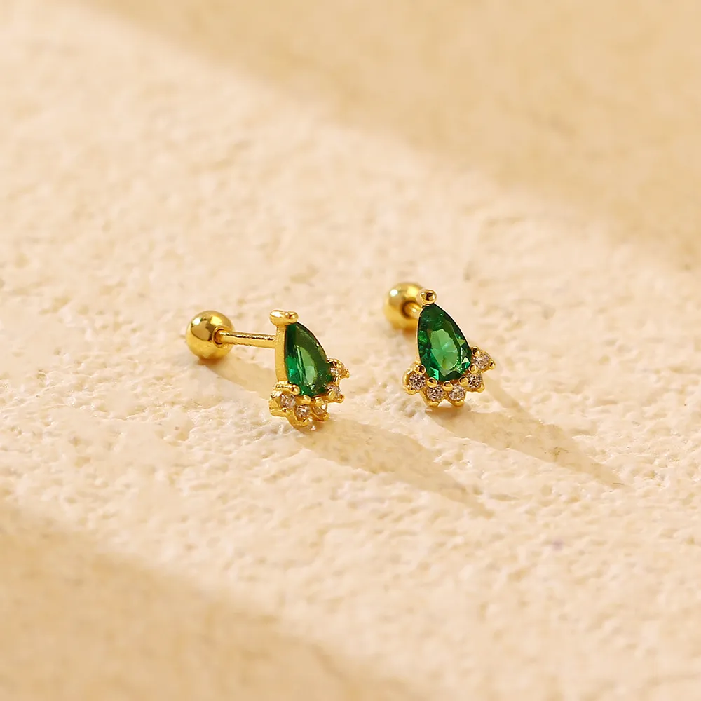 Key Features of Ear Studs Silver Emerald Diamond Screw