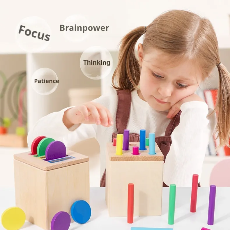 This teaching aid encourages children to classify and sort objects by color, shape, and size. This hands-on activity promotes logical thinking, problem-solving skills, and fine motor coordination.