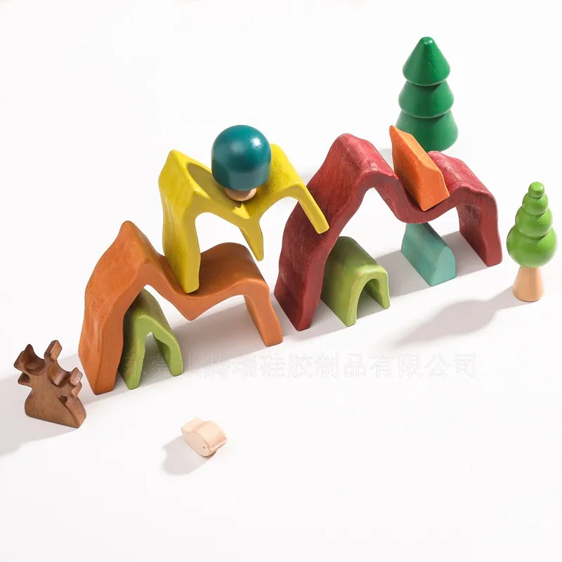 Early Childhood Education Puzzle Toys Wooden Rainbow Building Blocks