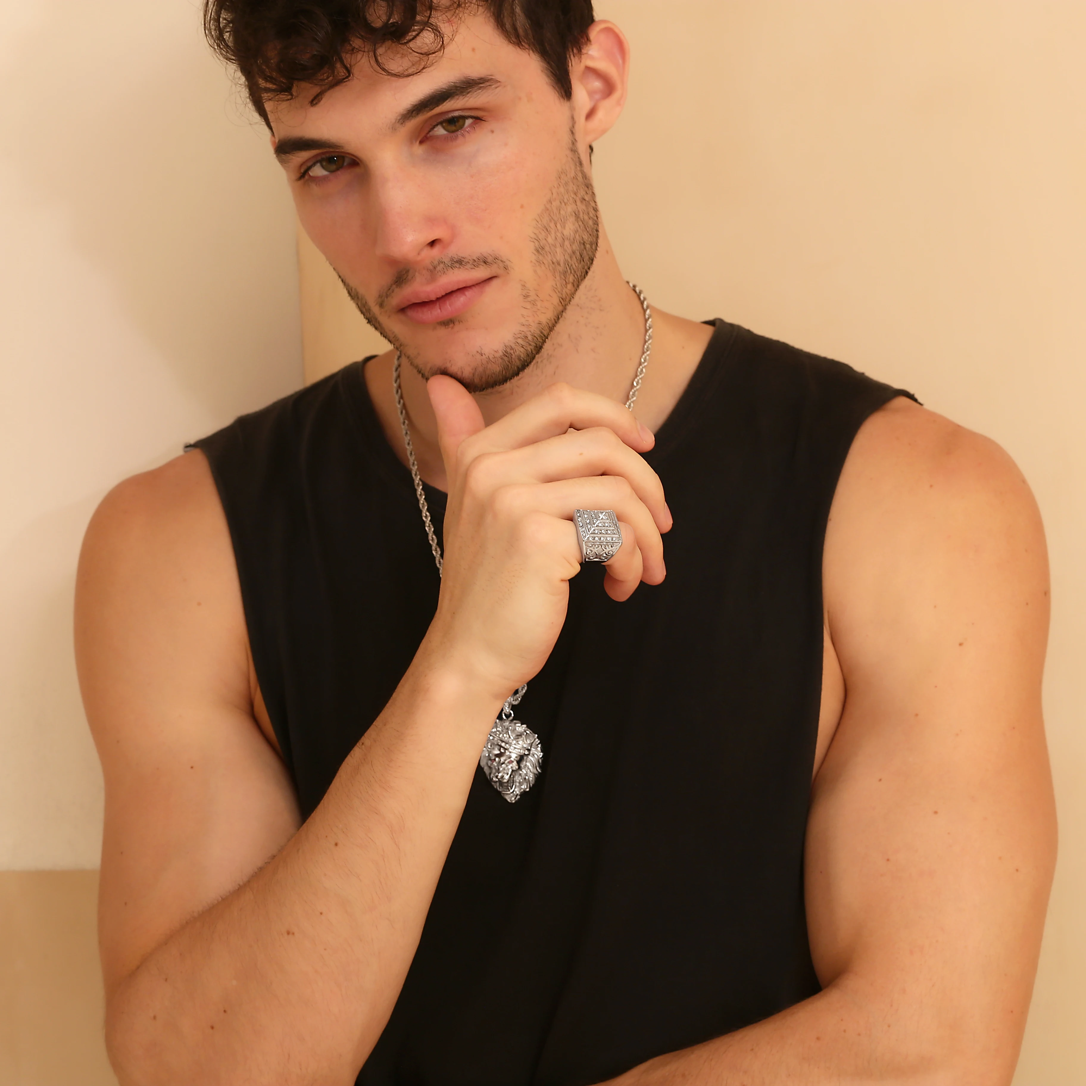 Add an edge to your casual outfits by pairing the ring with jeans, leather jackets, or boots, enhancing your everyday look with masculine sophistication.
