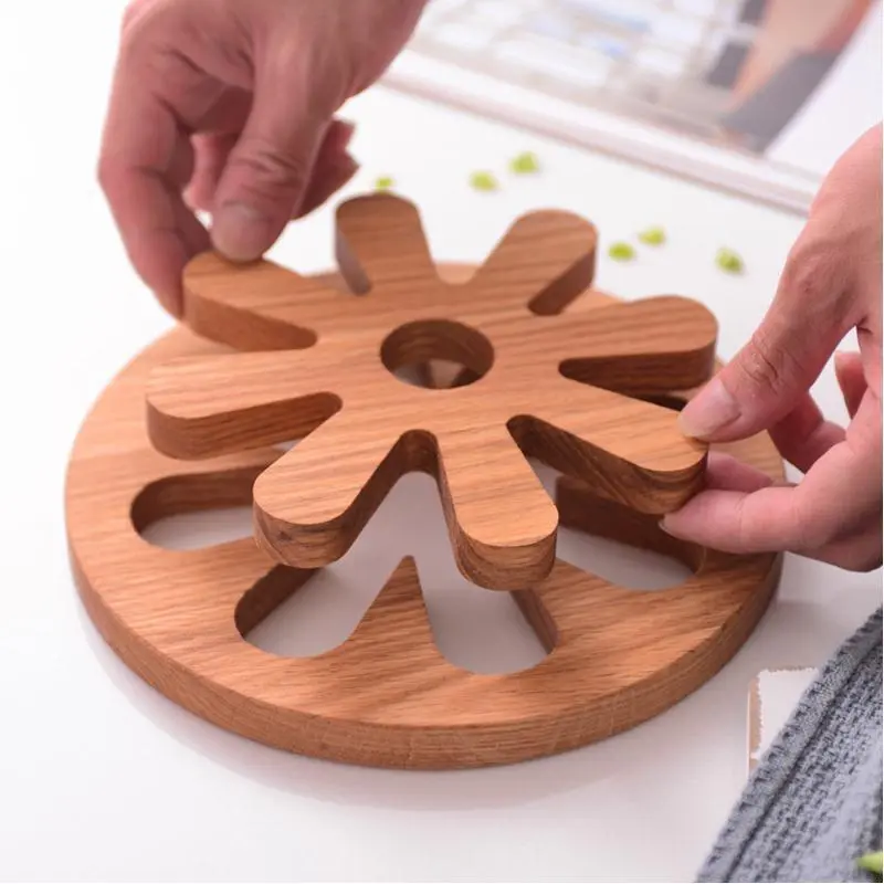 Ebony Solid Wood Round Petals Coasters Household Heat Pad