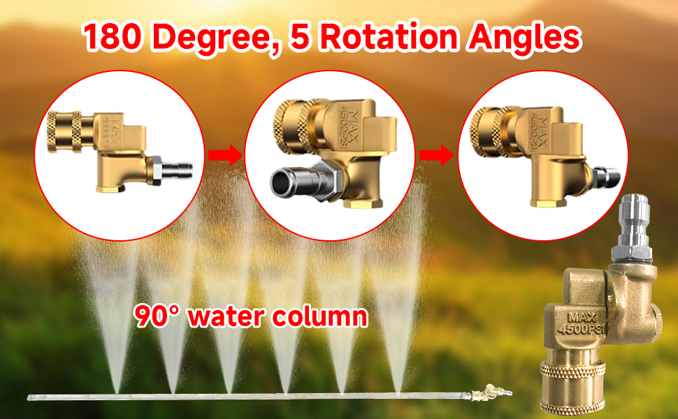 - Two multi-purpose quick couplings:One quick coupling can be rotated 180 degrees to solve the problem of low pressure due to the inability to bend,withstand a maximum of 2000PSI, comes with 1/4'Copper Quick adapter quick adapter,quick-connect design, universal interface to match most high-pressure water guns
