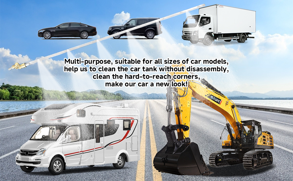 39in Radiator Cleaning Wand,5 spouts cover a larger area,Suitable for use in cleaning large tanks or deep hard to reach areas.In some tanks where there is more space,The longer tool can better cover the whole cleaning area and improve the cleaning efficiency,Such as trucks,caravans,excavators and other large vehicles.