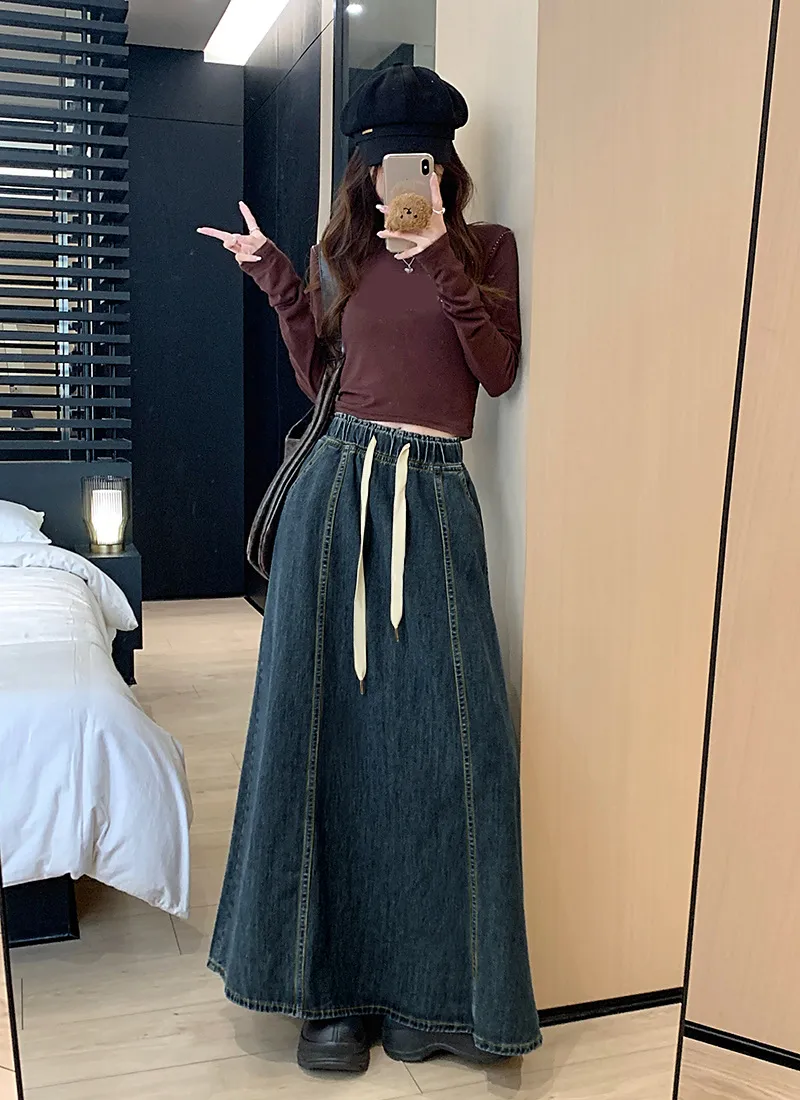 Style Tips for the Elastic Waist Drawstring Dark Blue Denim Skirt