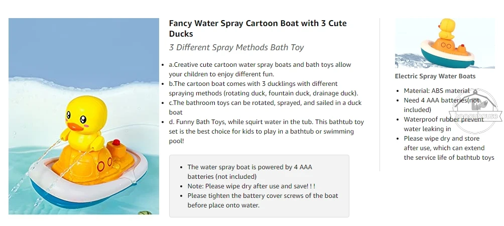 cartoon boat, put it in the water, and it will automatically move forward. Put on the revolving duck, the lovely little duck will spin,