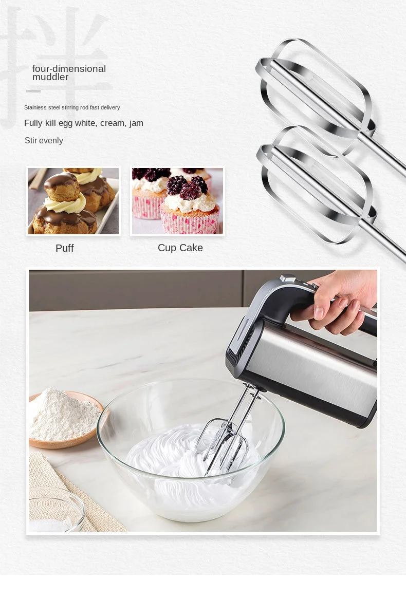 Electric Egg Beater - Stainless Steel Mini Whipped Cream and Flour Mixer