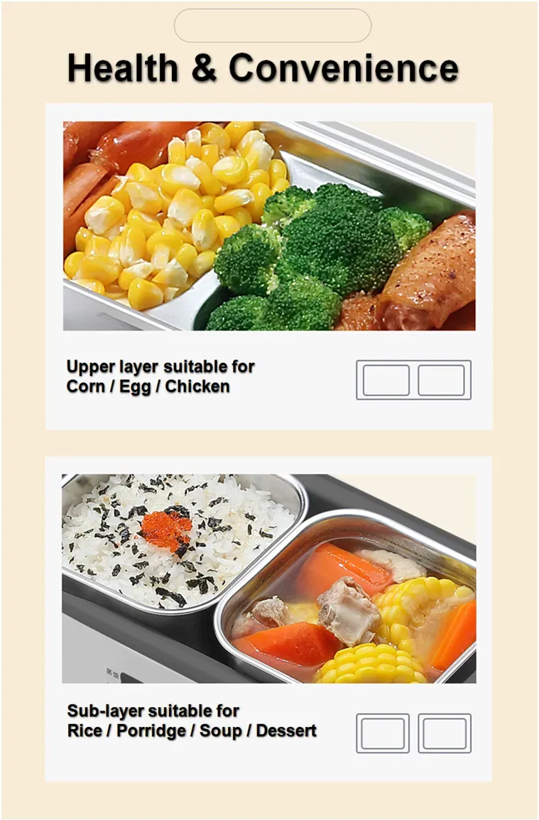 The bento-style electric heating lunch box combines the functionality of a traditional bento box with the convenience of electric heating. These lunch boxes are typically divided into multiple compartments for different types of food, and they are designed to keep your meal well-organized and fresh. The bento-style lunch box is perfect for those who enjoy packing a variety of dishes and want to keep them separate while still being able to heat them on the go.