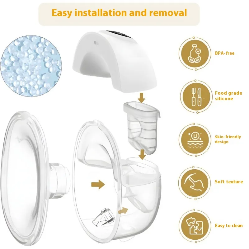 Maintaining hygiene is crucial when using a breast pump, and the Electric Large Suction Invisible Integrated Hands-Free Portable Mute Breast Suction Cup is designed to be easy to clean. The detachable parts can be easily washed and sanitized, ensuring that the device remains safe and hygienic for every use.