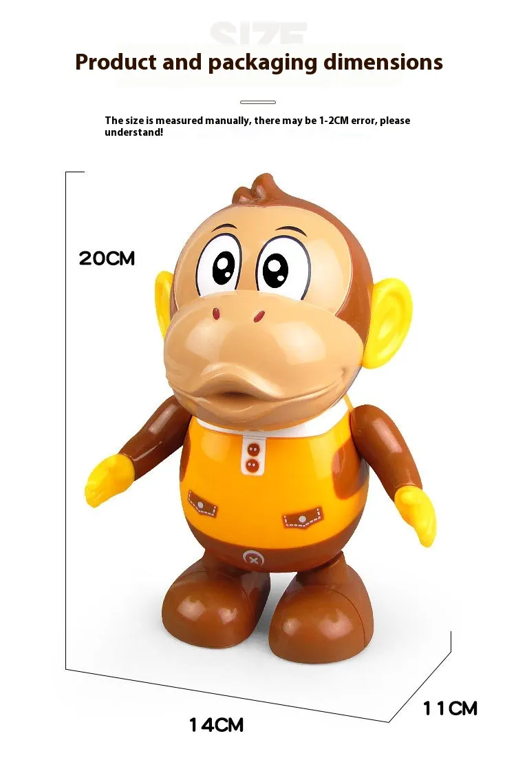 The monkey’s body lights up with colorful LED lights that flash and change as it moves to the beat of the music. These vibrant lights are designed to capture attention and stimulate visual senses, enhancing the overall play experience. Kids will love watching the toy light up as it dances, making it even more engaging for visual learners.