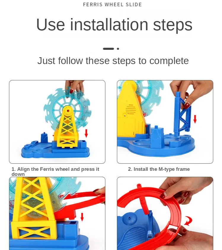 By interacting with the track slide, children can develop imagination, problem-solving skills, and creativity as they design their own sliding paths and play scenarios. Whether they are imagining a race or creating their own mini amusement park, this toy encourages open-ended play and fosters cognitive development.