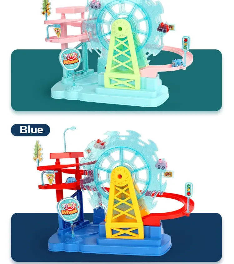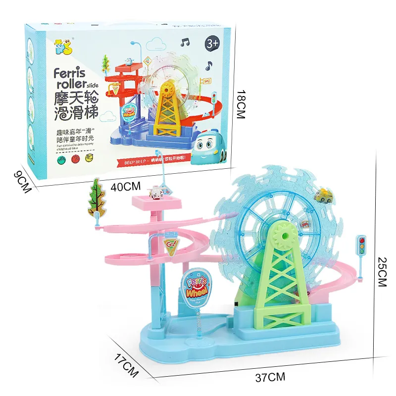 Functions: Ferris wheel rotation, sliding car, cool lights, dynamic music