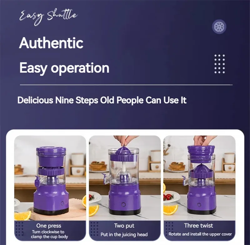 "Super convenient! No more squeezing by hand—just press the button, and the juicer does all the work. Perfect for fresh orange juice in
