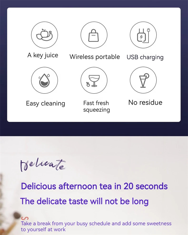 【Electric Citrus Juicer】: USB electric juicer, limes, and other citrus fruits to make your favorite juices homemade.