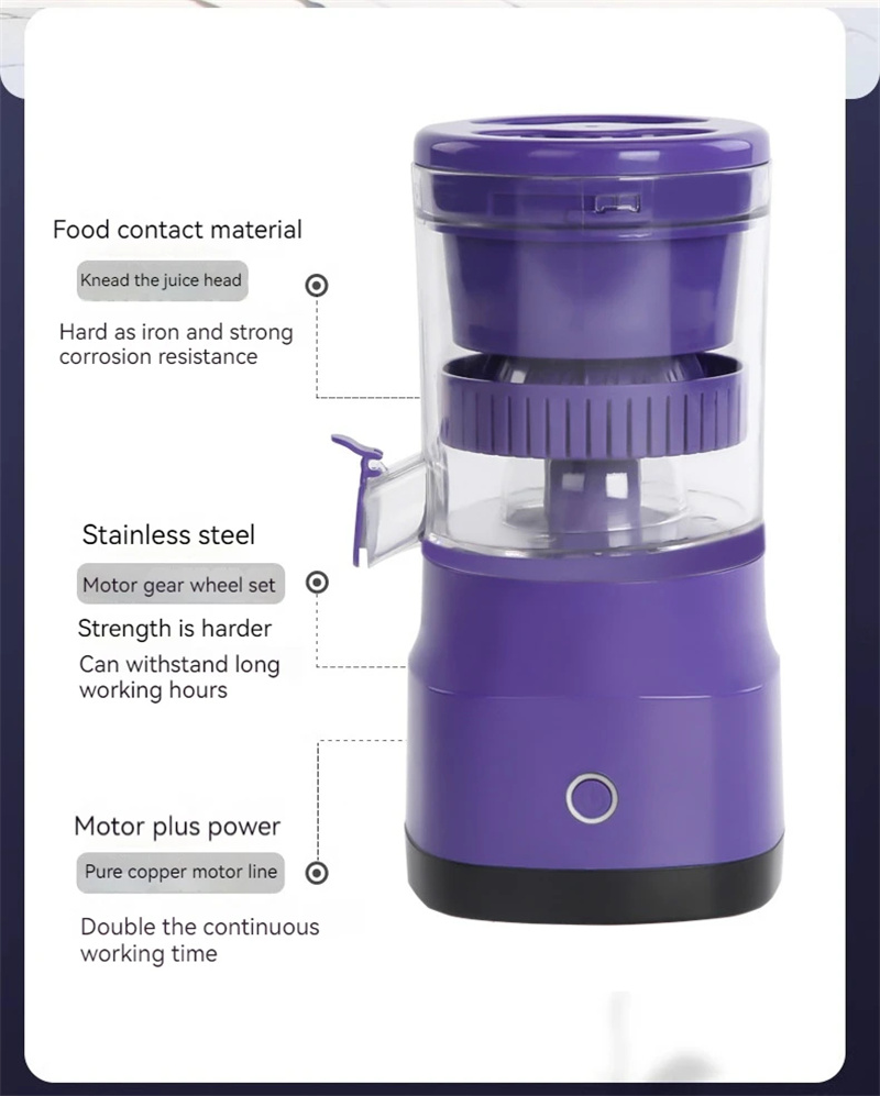 【Easy to Use】: This lemon squeezer has an electric operation, a long press of 2 seconds to start, and a button operation, suitable for the