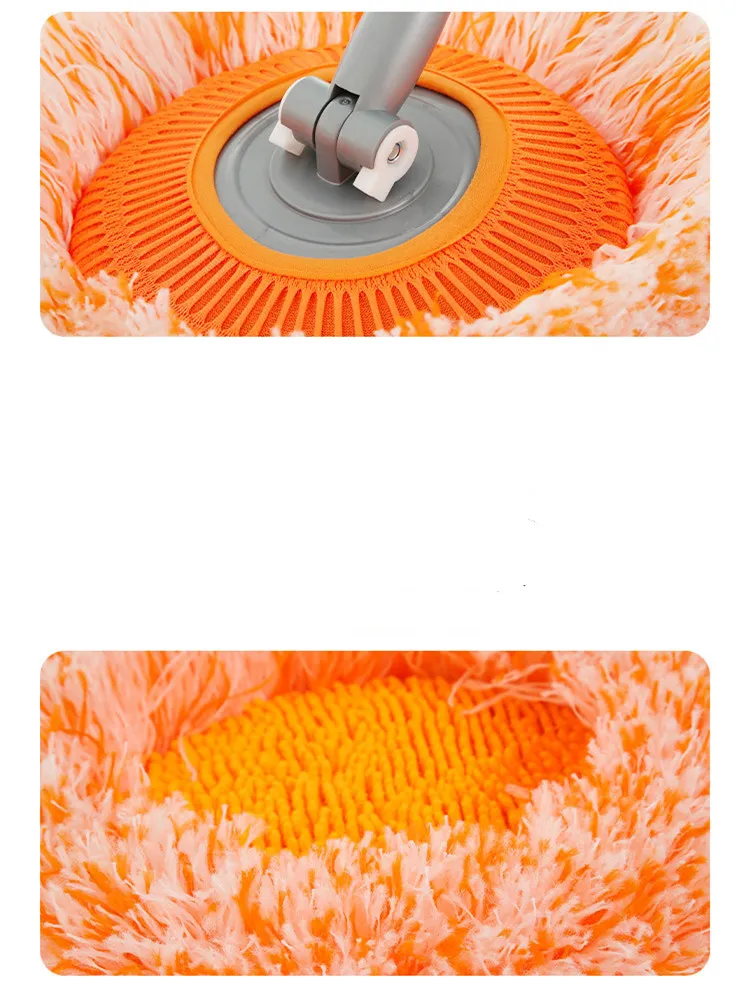 360° Rotating Mop Head: The mop head rotates 360 degrees, allowing you to clean around furniture, in tight spaces, and