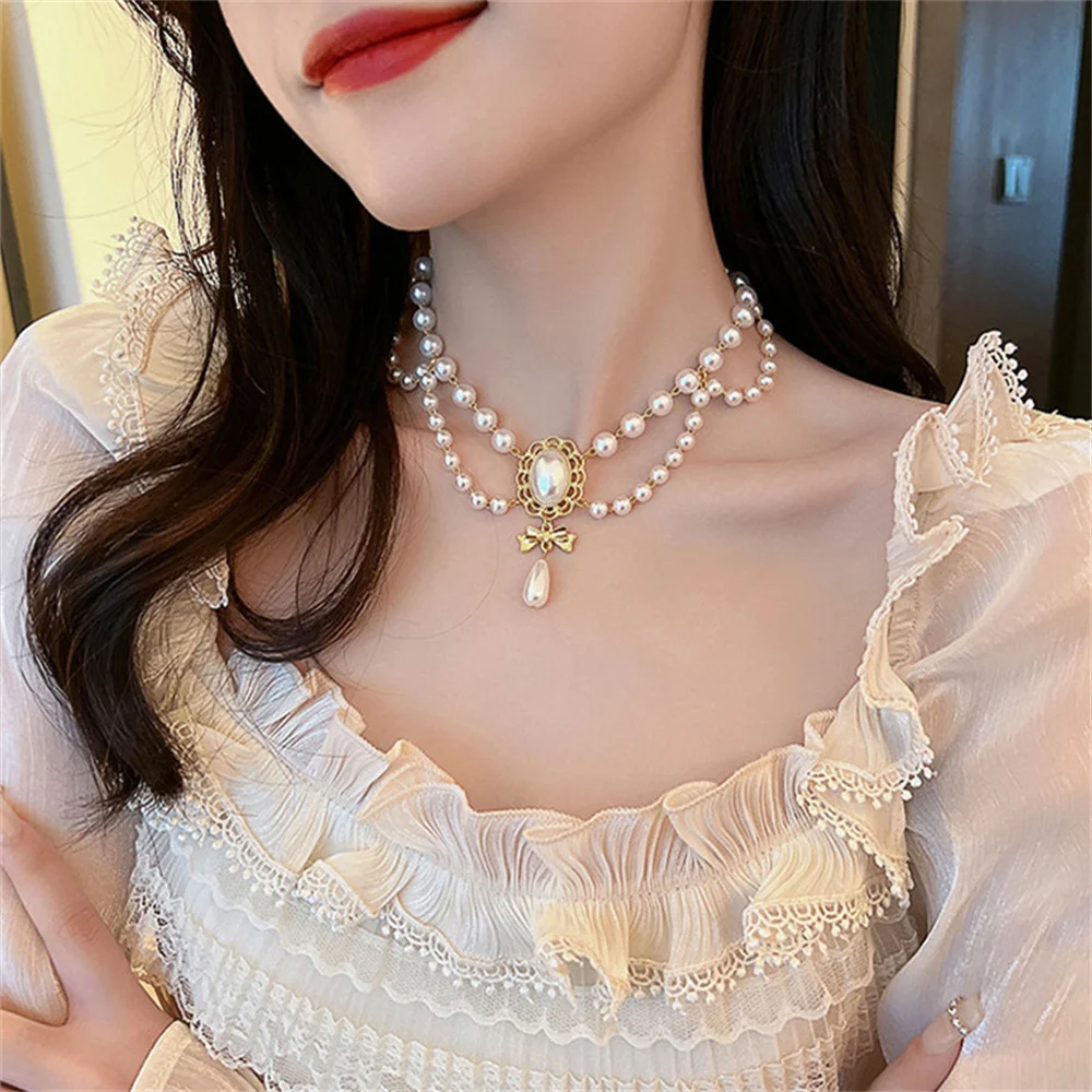 The Elegant White Pearl Heart Necklace is a timeless piece of jewelry that beautifully combines vintage charm with modern sophistication. Featuring multi-layered white pearls and a delicate heart-shaped bowknot pendant, this choker necklace is perfect for women’s weddings, formal events, or any occasion where elegance is essential. Crafted with attention to detail, this pearl choker necklace is a statement of grace and femininity.