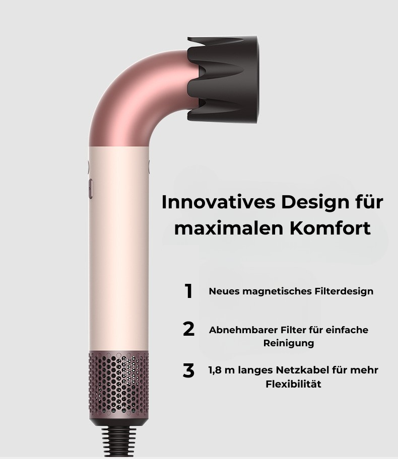 Experience perfectly styled hair every day with the ELYNEA Airsonic R Professional. Fast, gentle, and efficient – it dries your hair gently and delivers long-lasting, professional results in just minutes. Save time and energy while taking your styling to the next level. Enjoy the feeling of healthy, shiny hair without compromise. Discover the difference today!