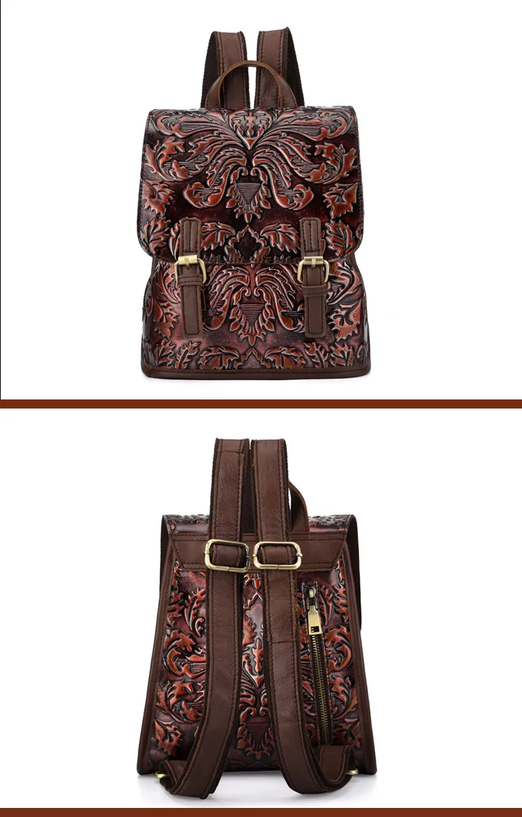 Featuring intricate embossed patterns and a timeless vintage aesthetic, this backpack is ideal for individuals who appreciate elegant