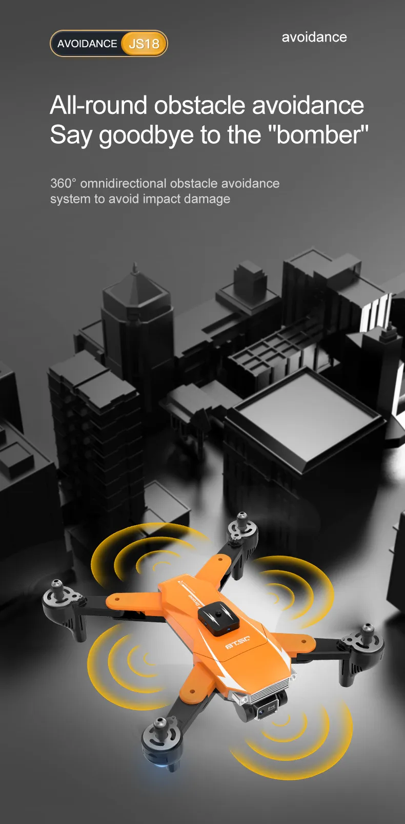 One of the standout features of the JS18 drone is its obstacle avoidance system, which uses advanced sensors to detect and avoid obstacles during flight. This intelligent system allows the drone to automatically navigate around obstacles, minimizing the risk of collisions and providing a safer flying experience—especially for beginners. This technology ensures smoother, worry-free flights even in complex environments like forests, urban areas, or indoor spaces.