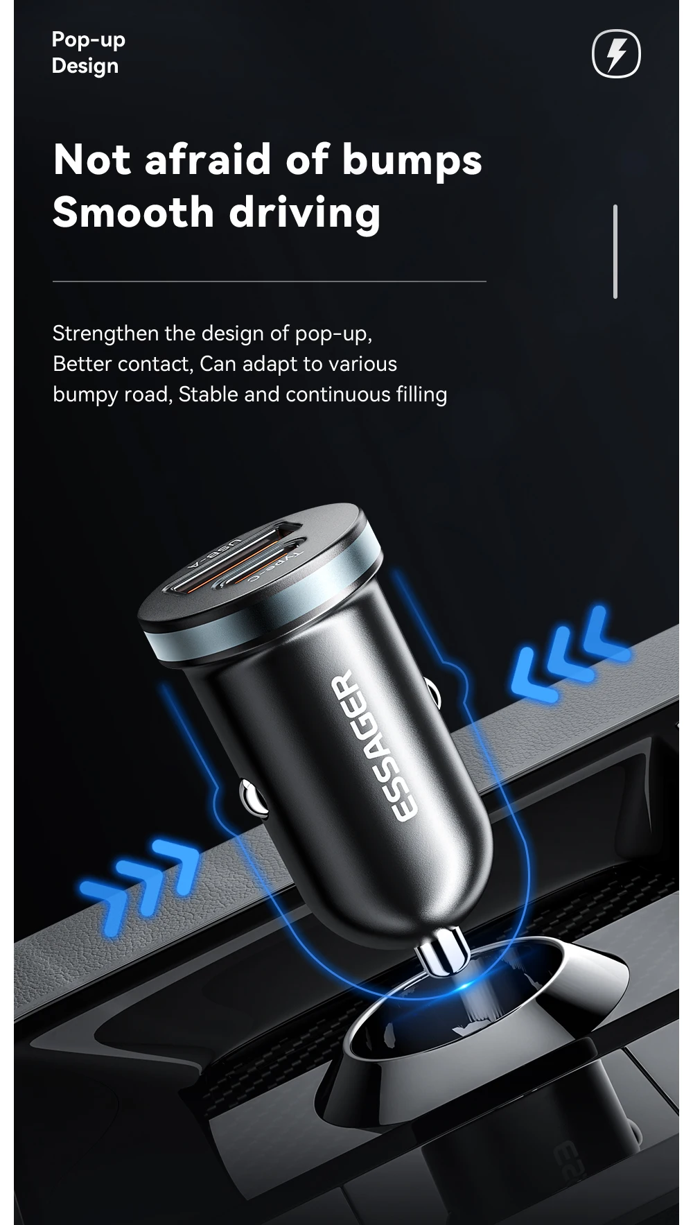 The Essager 30W USB car charger supports Quick Charge 4.0/3.0 and PD for rapid charging. Compatible with Xiaomi, iPhone 12, 13, 14 Pro, and other devices, it ensures fast and efficient charging on the go. Perfect for keeping your phone powered during travel.