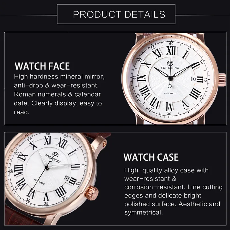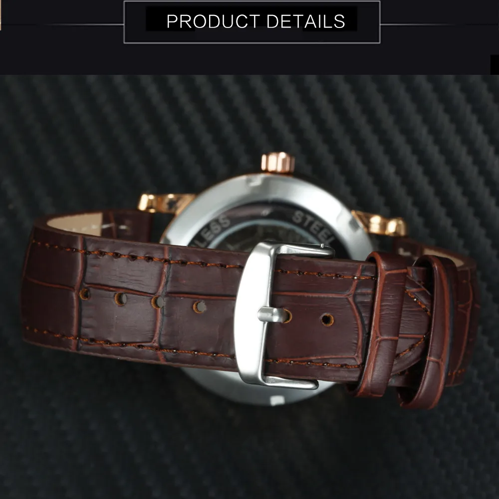 European American Style Men’s Casual Hollow Mechanical Watch features an adjustable leather or stainless-steel strap for a perfect fit.