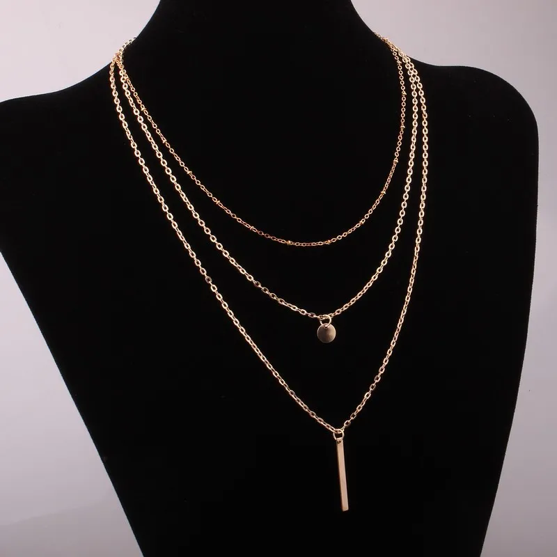 European and American Fashion Jewelry: Multi-layer Round Copper Bead Chain Sequin Metal Strip Necklace Elegant and Versatile