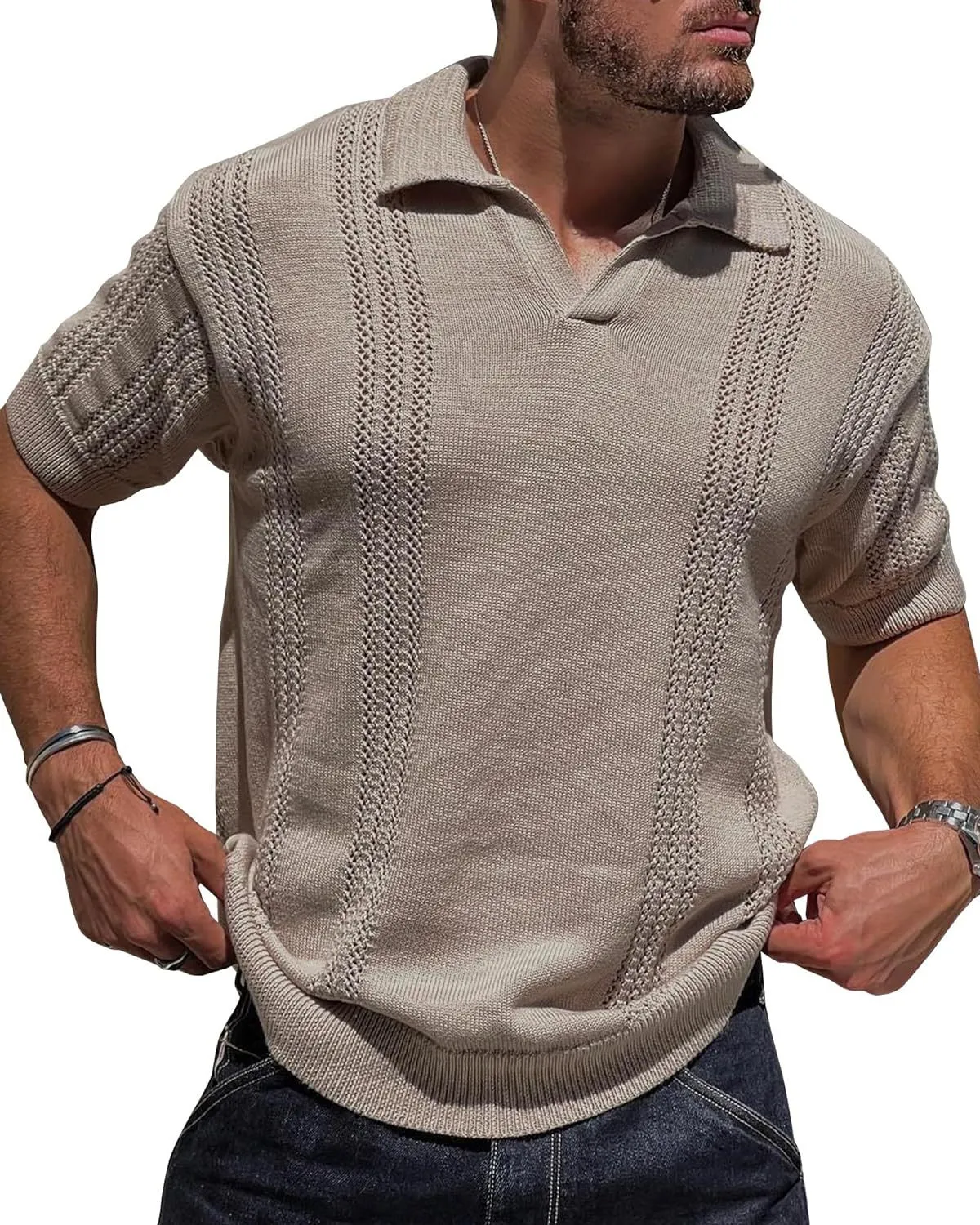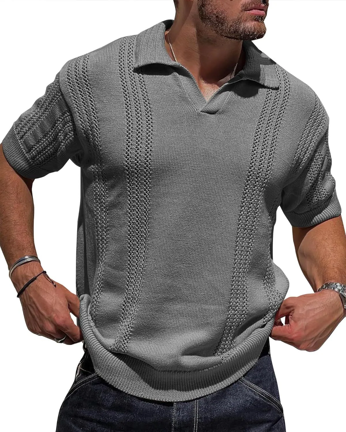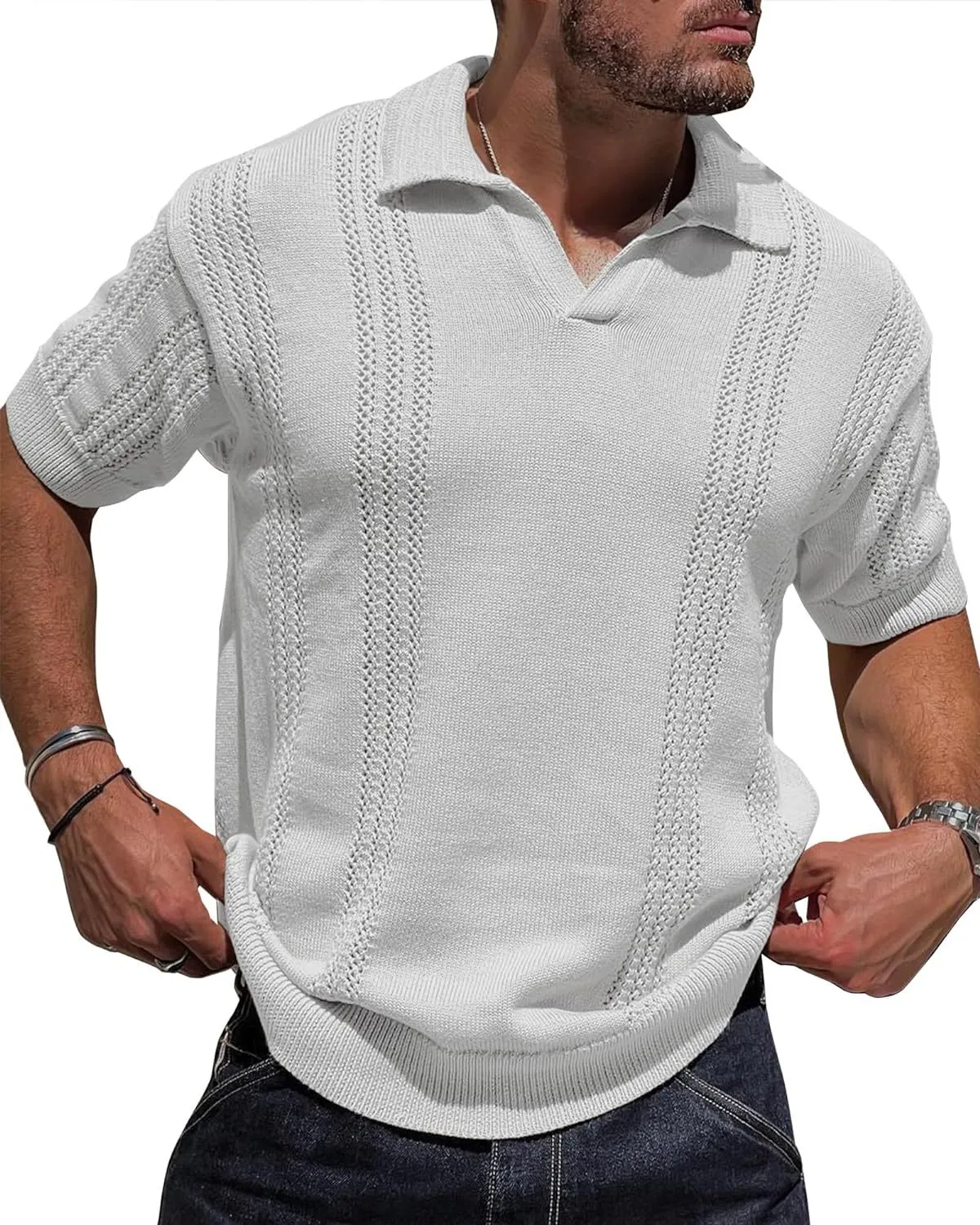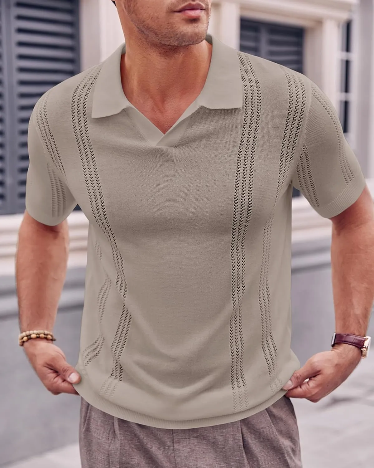 European And American Fashion Men's Knitted Polo Shirt Short Sleeve V-neck Hollow
