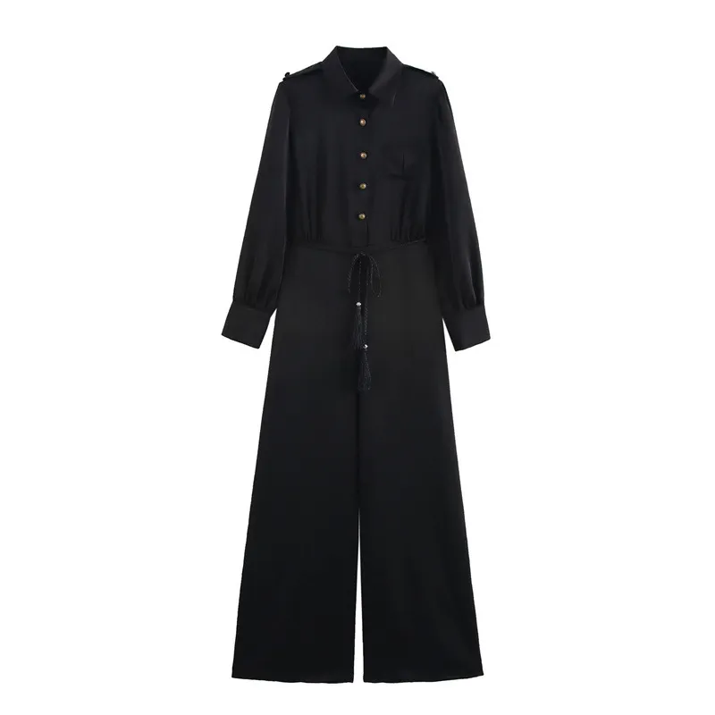 European and American Style Design with Belt Wide Leg Jumpsuit – Trendy, Comfortable, and Chic