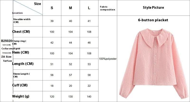 European and American Style Fashion Small Round Lapel Plaid Shirt
