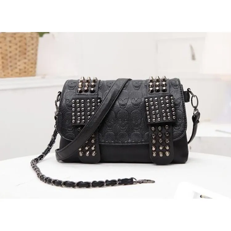 Unleash your inner fashion rebel with the European and American Style Rivet Skull Handbag, the perfect blend of edgy design