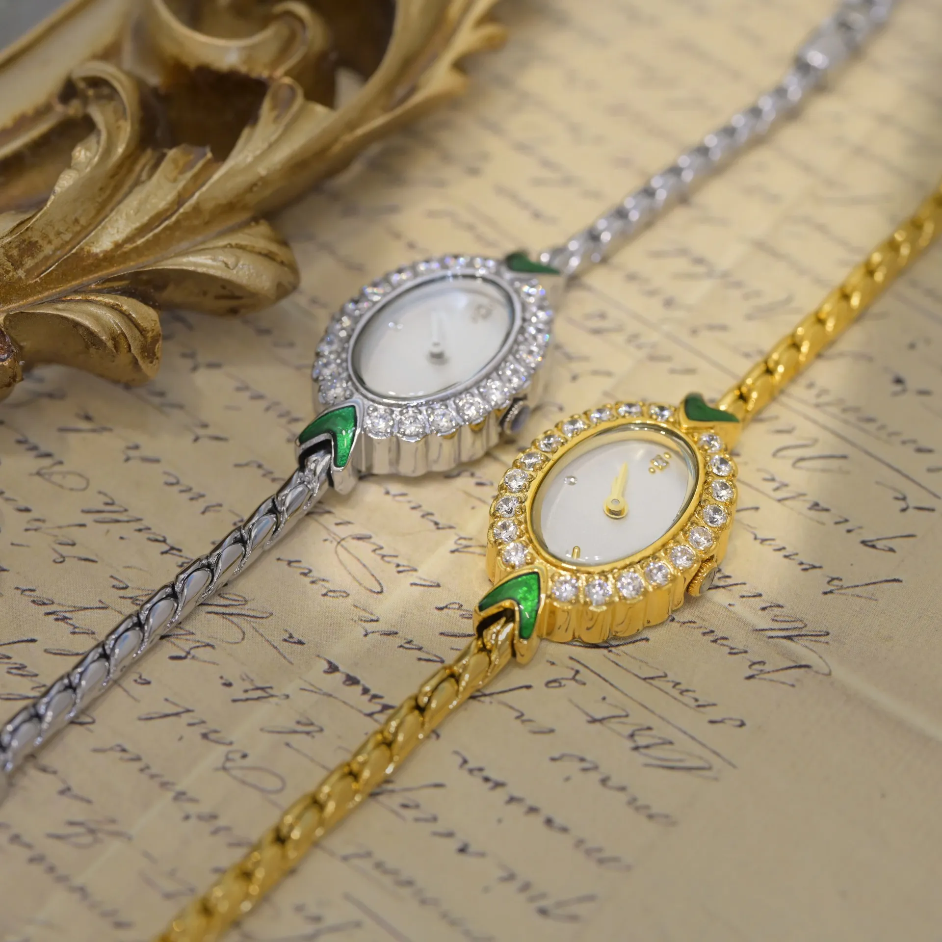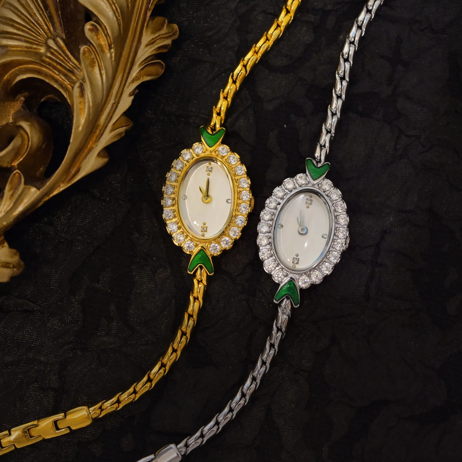 European Small Gold Womens Watch Handmade Rhinestone Inlaid Antique Style