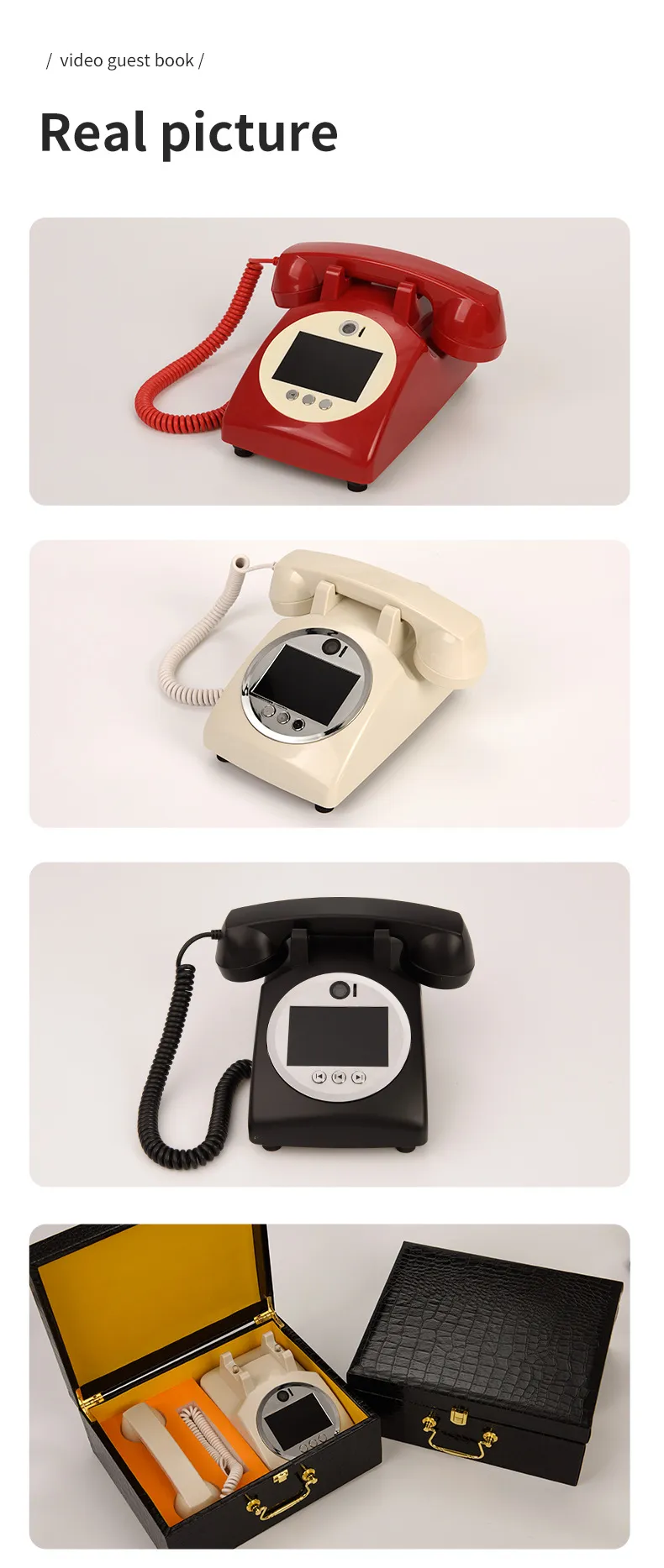 Whether it’s for a wedding, birthday celebration, or other special event, this video blessing message decoration telephone serves as a beautiful addition to your decor and a keepsake that will last a lifetime. With its retro design and easy-to-use features, the Video Visitors' Book enhances any occasion by providing a personal touch to the way memories are captured.