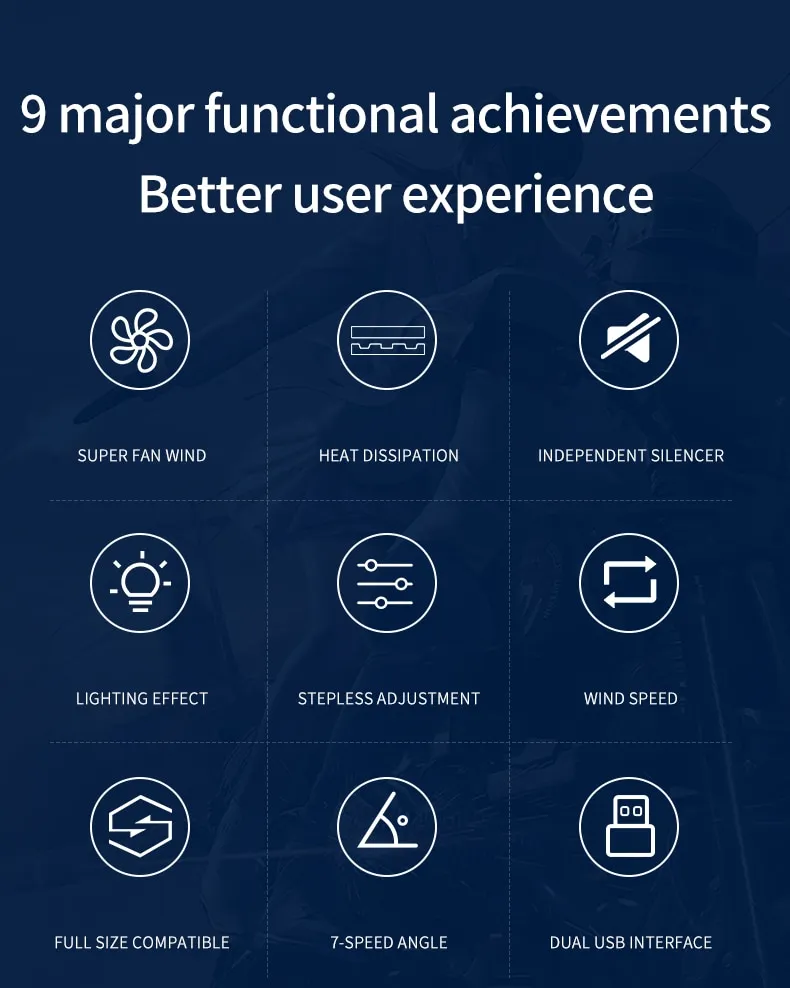 The laptop cooling pad adopts ergonomic design, seven angles can be adjusted to better protect your spine;