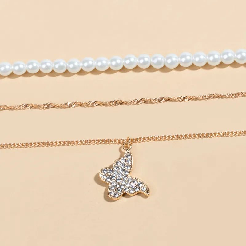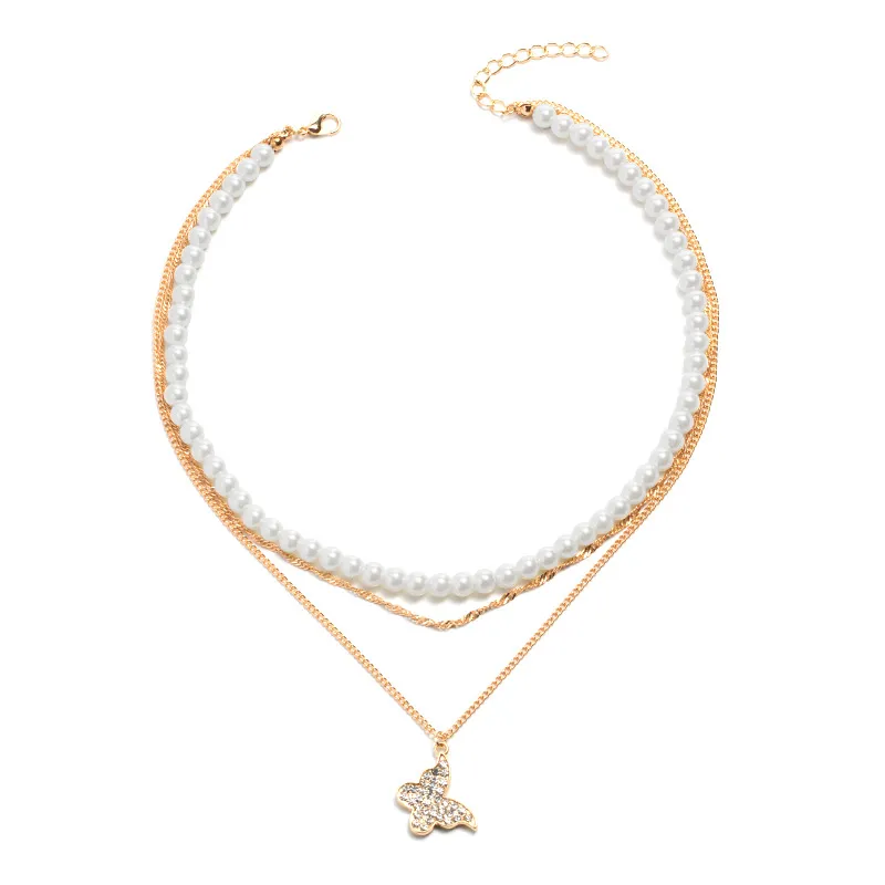 Exquisite Butterfly Multi-layer Pearl Pendant