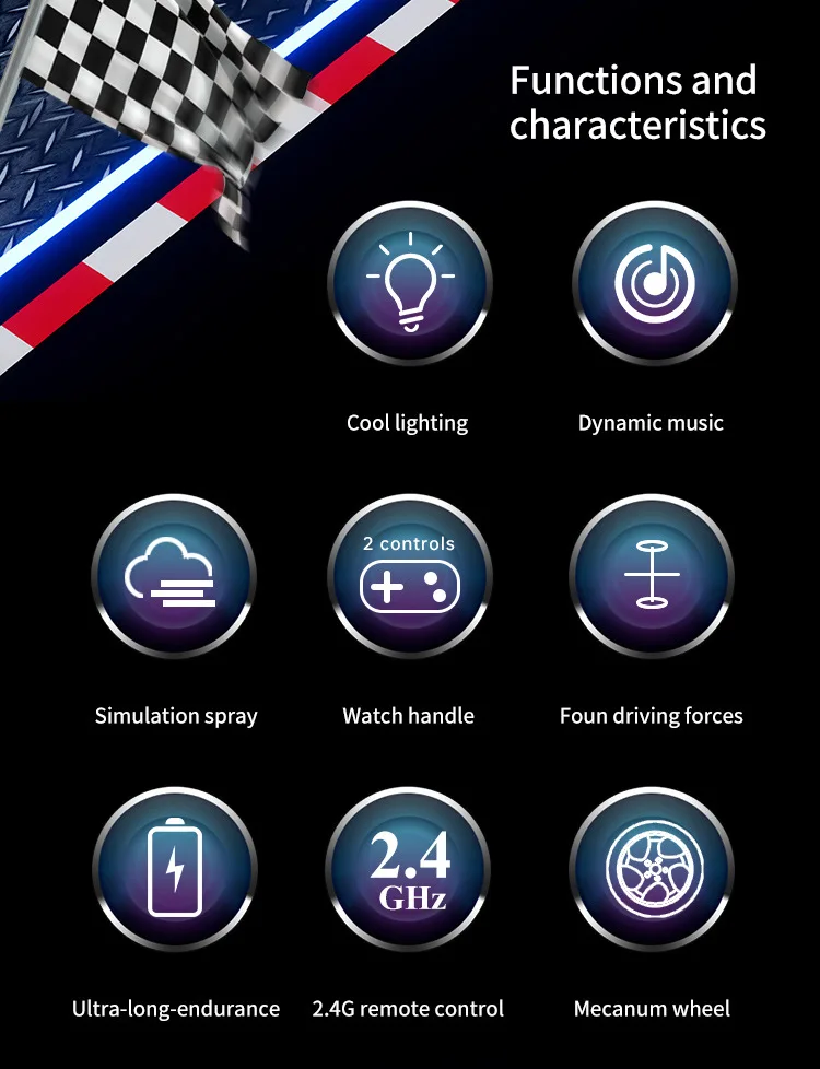 performing drifting or spin stunts. The car will release mist or spray, adding an exciting visual effect