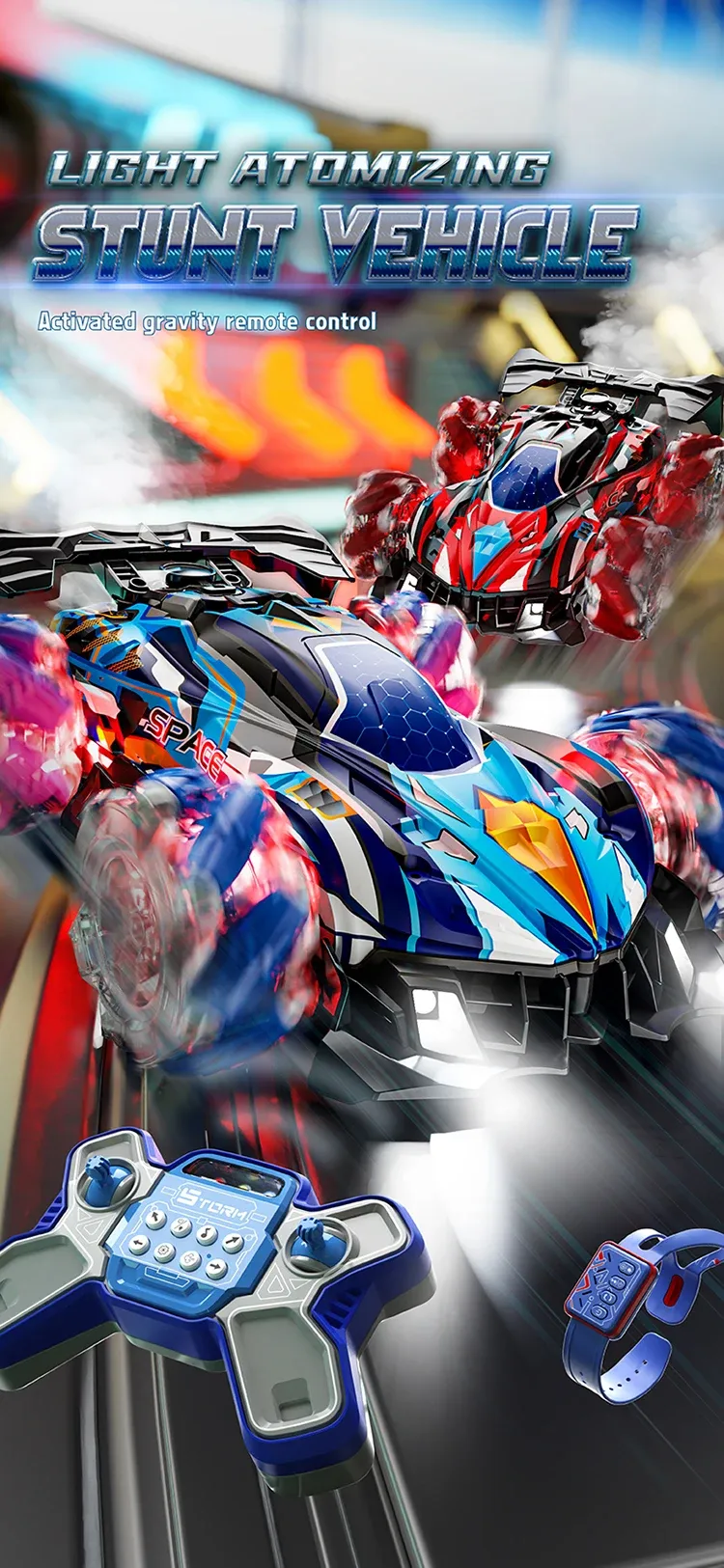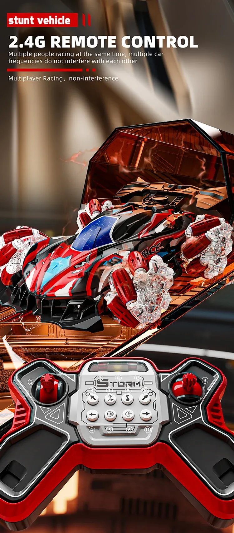 • RC Controlled :Experience the thrill of remote control with this RC stunt car. Its lithium battery-powered design ensures