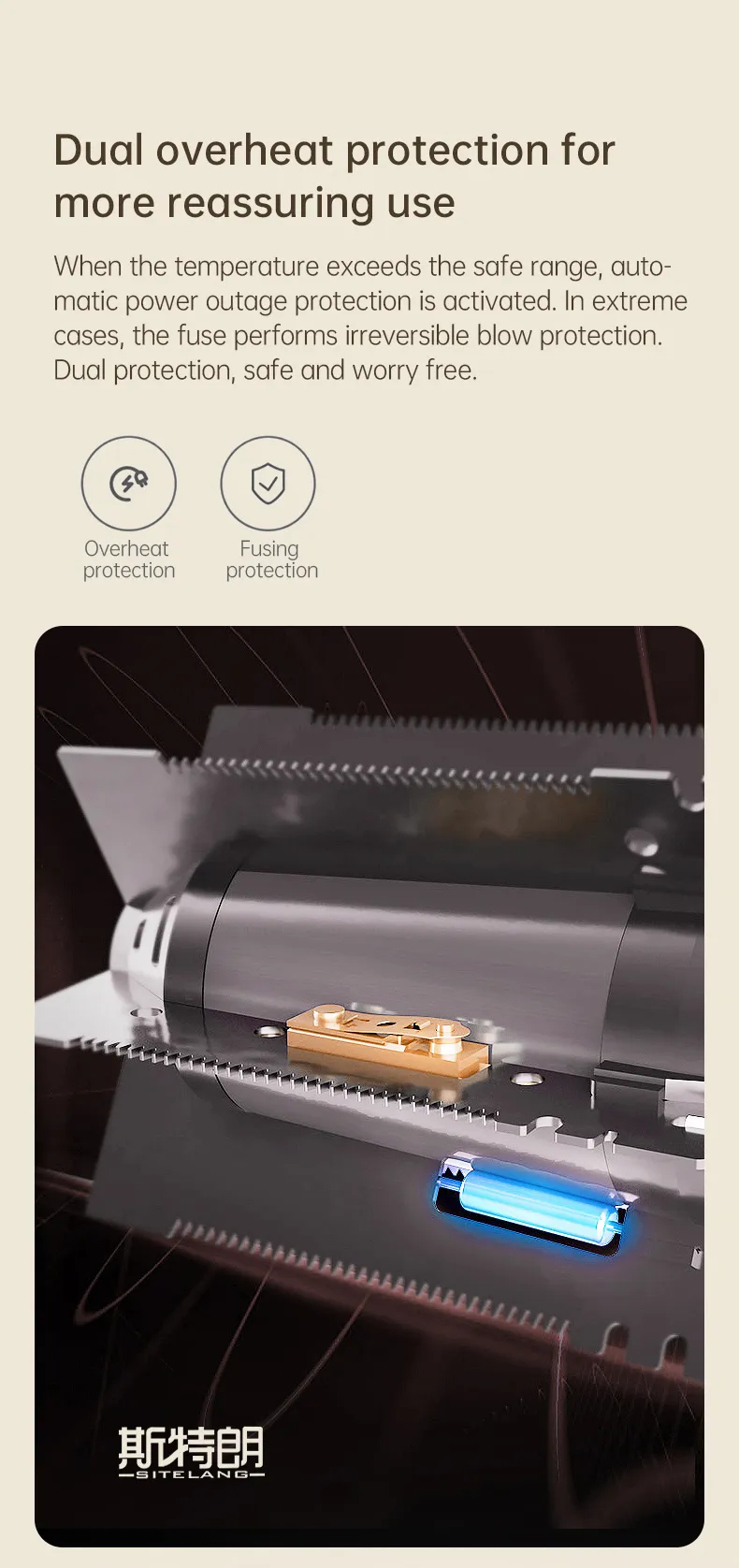 With a 1900W motor, this blow dryer offers an incredible drying speed that significantly reduces drying time, while the low noise technology ensures a quieter and more enjoyable styling experience. The constant temperature control keeps your hair safe from heat damage, locking in moisture for smooth, shiny, and frizz-free hair. Perfect for home salons or personal use, the F41 Hair Dryer ensures professional results every time.