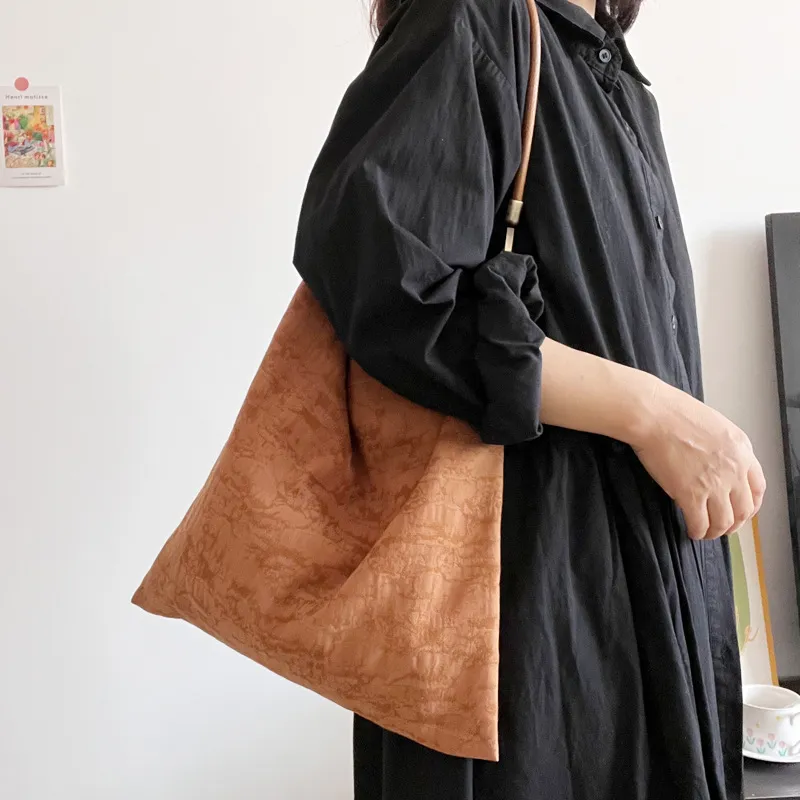 Fabric Leather Shoulder Strap Jacquard Versatile Special-interest Shoulder Bag