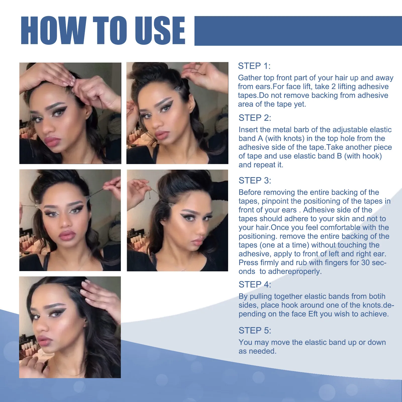 Instant Facelift Effect: Provides an immediate lifting effect to create a more defined jawline and cheekbones.