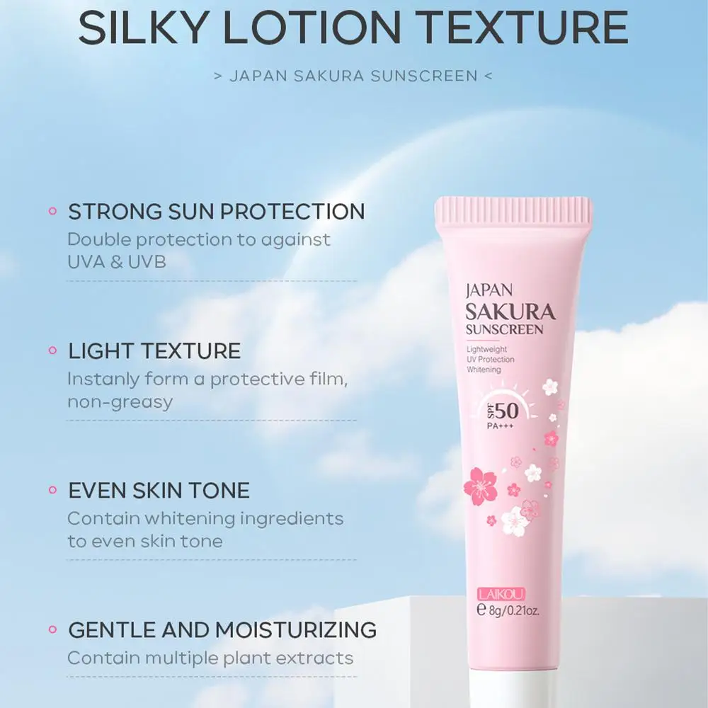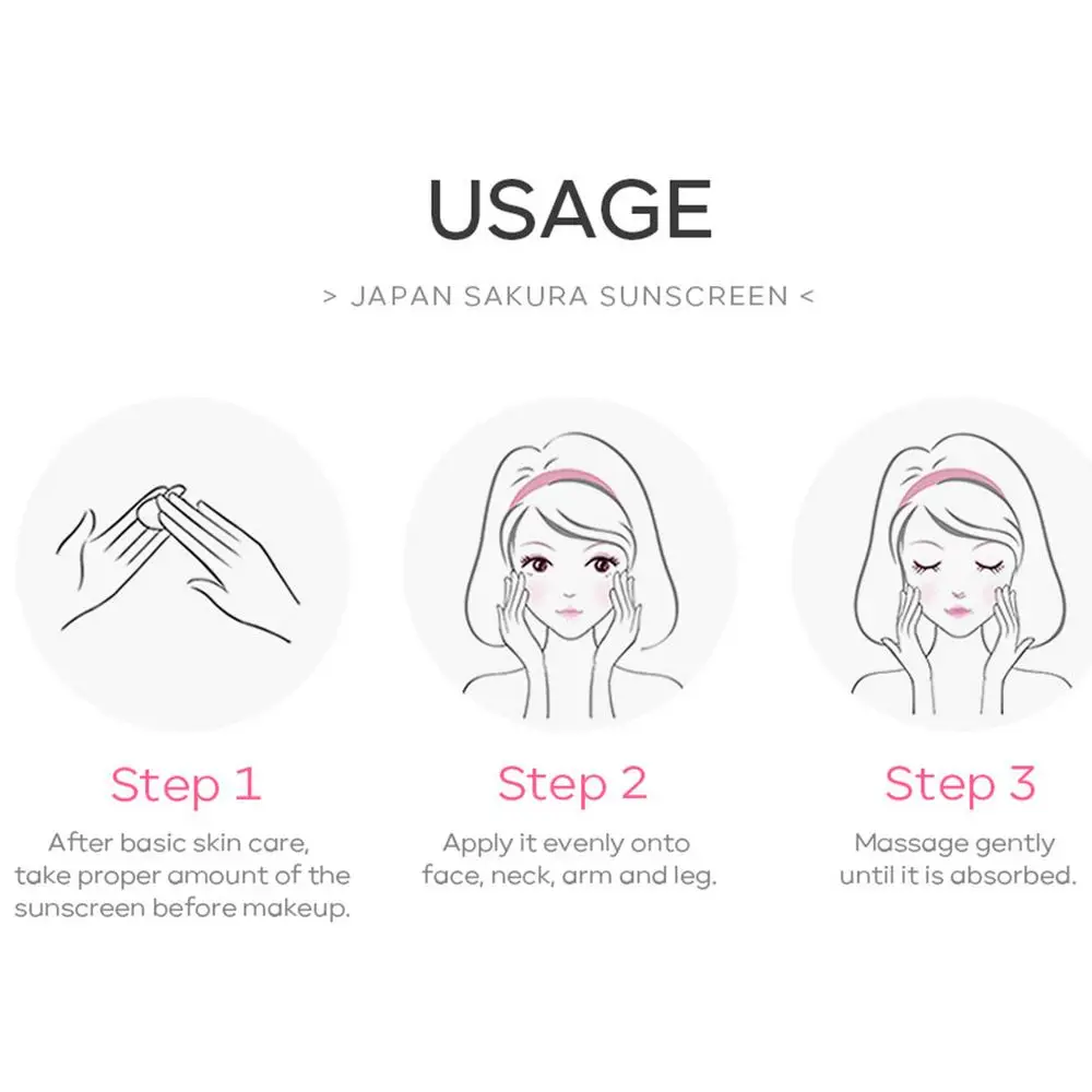 4.Light Texture: This Sakura Sunscreen has a light and refreshing texture that will not clog pores, not greasy or sticky, and very suitable for daily use. It protects your skin from harmful UV rays and keeps it hydrating and smooth.