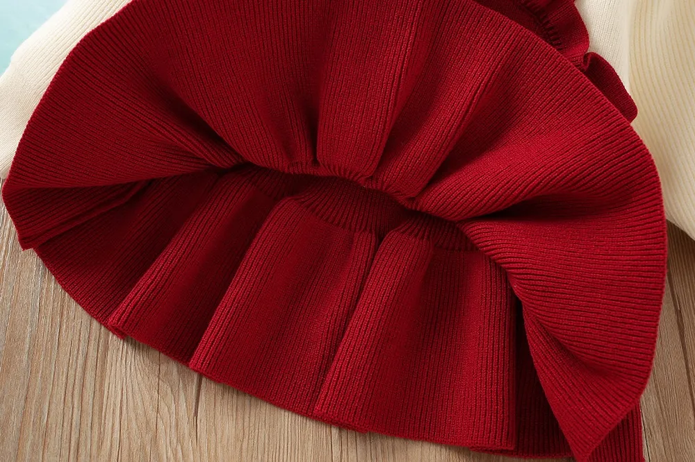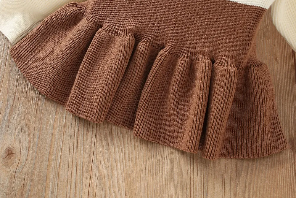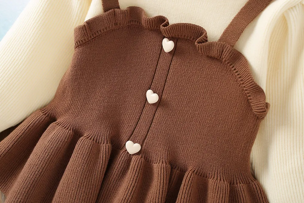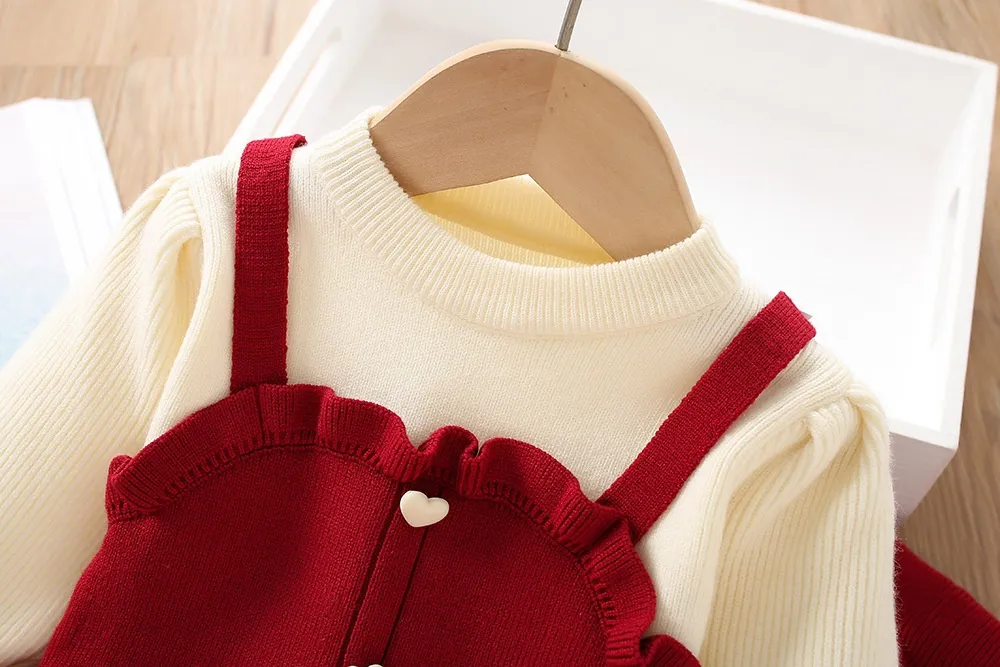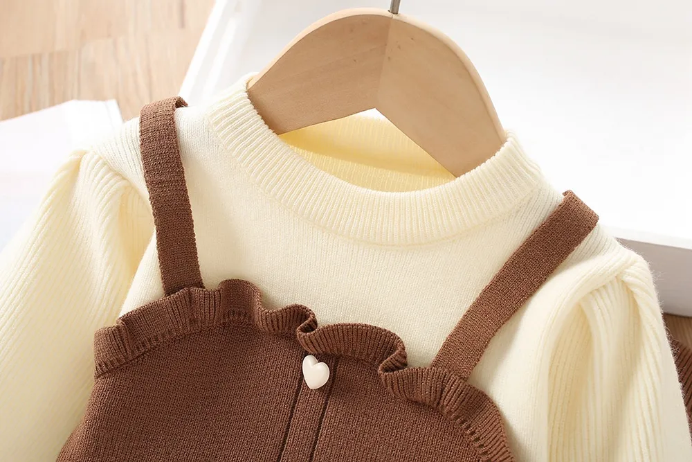 Long-Sleeved Top: The top features a knitted long-sleeve design, which is perfect for cooler seasons. It