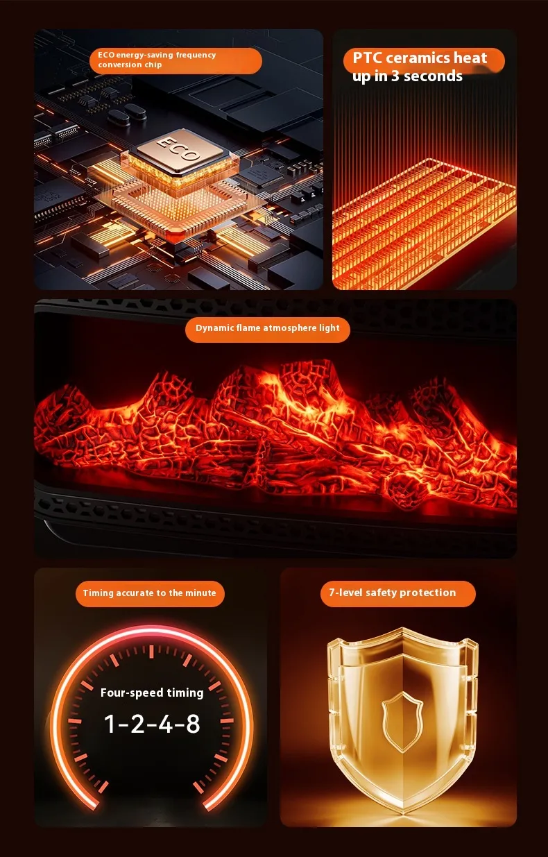 Fan Heater 3D Dynamic Flame Bathroom Home Heater 1500W Portable Household ECO Electric Heater PTC Fast Heating Shake Head Warmer
