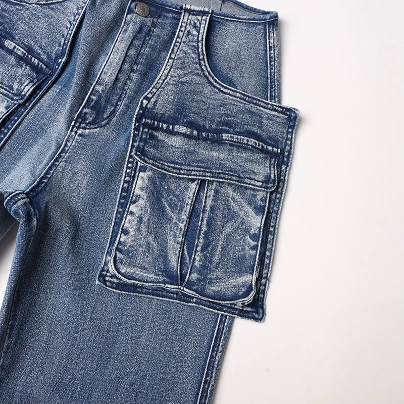 These Fashion Casual Patchwork Multi-pocket Harmonica Jeans are more than just a pair of jeans; they are a statement piece that offers practicality without sacrificing style. Whether you're heading out for a casual day with friends or need something versatile for your wardrobe, these jeans are your go-to choice for any occasion. Get ready to turn heads and make a lasting impression with every step you take.