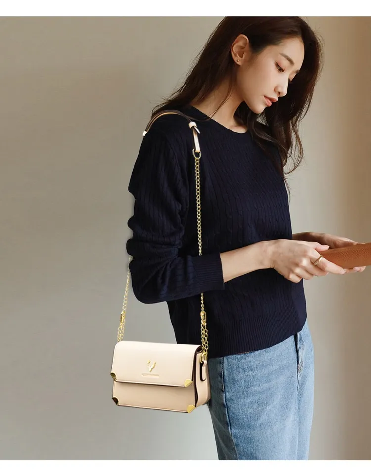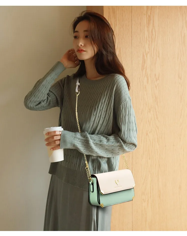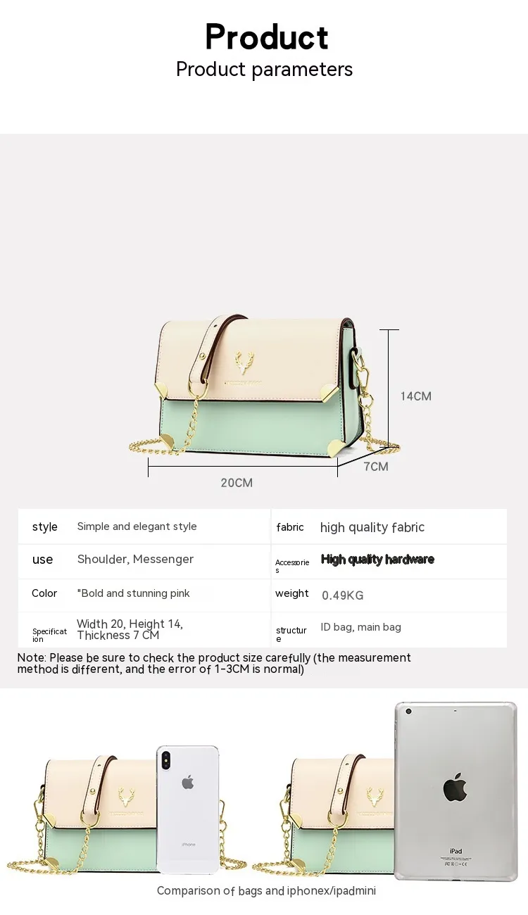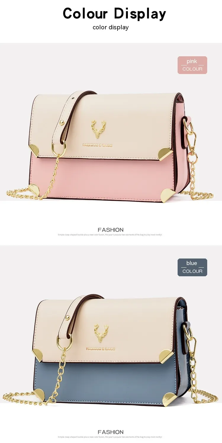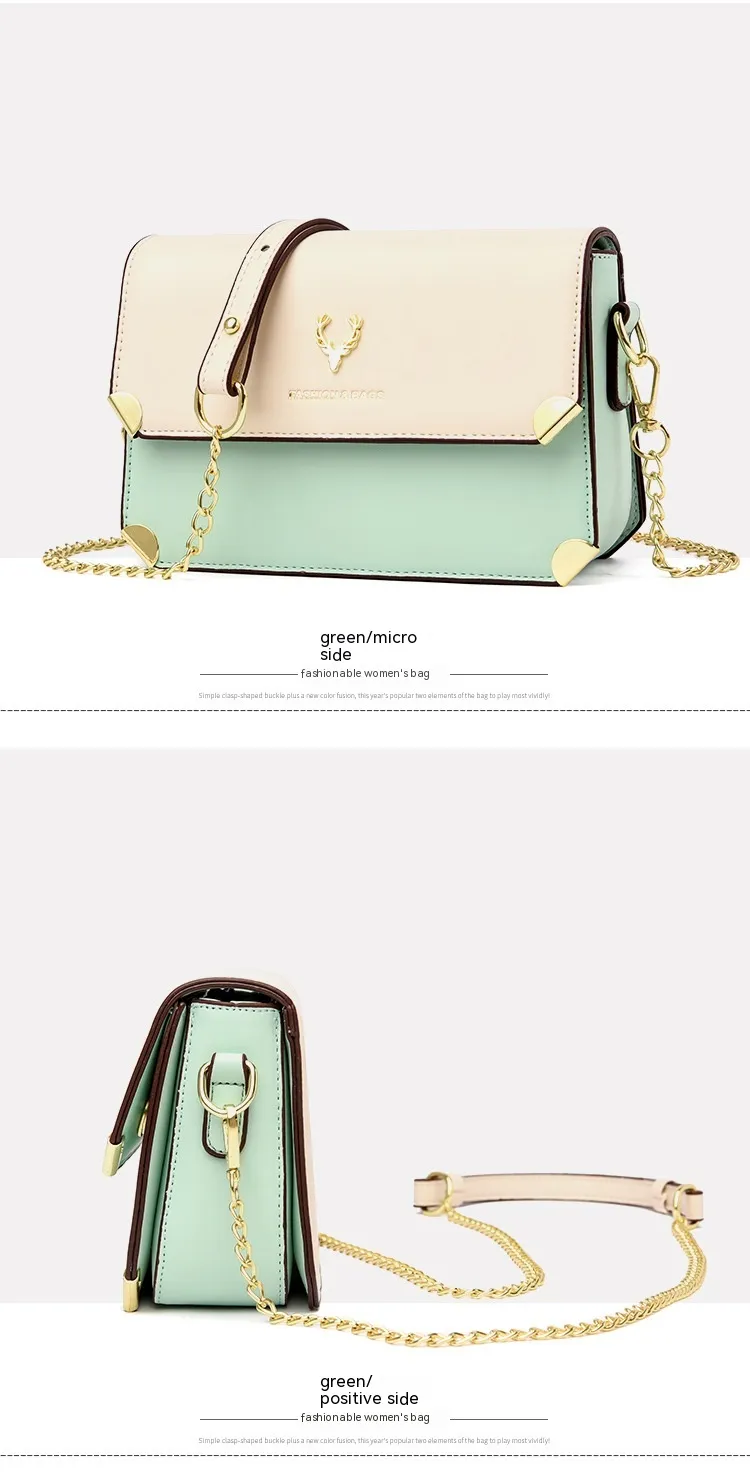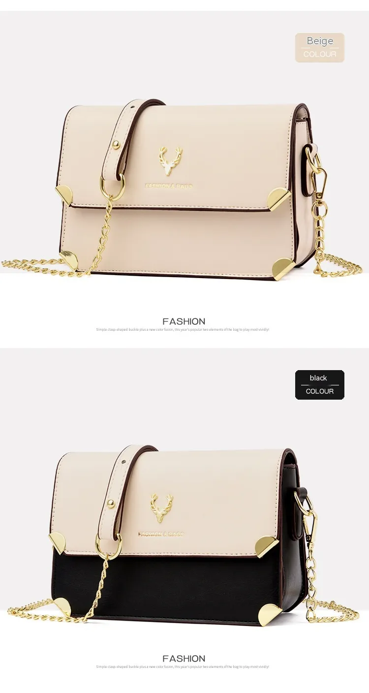 Fashion Color Contrast Deer Head Chain Crossbody Bag