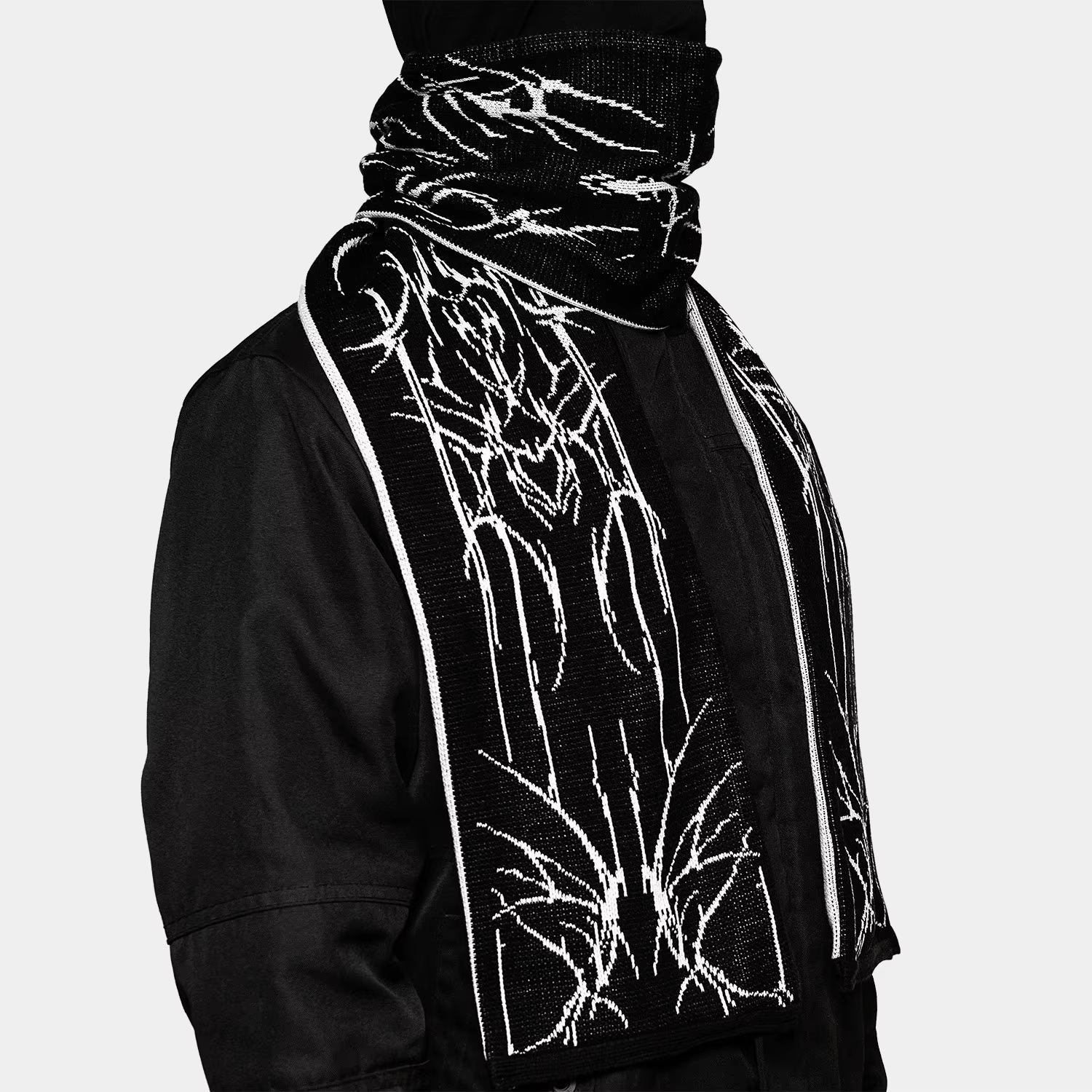 Crafted from soft, high-quality materials, this scarf is not only stylish but also provides warmth and comfort during colder months. The striped design and bold aesthetic make it a versatile accessory for casual outings or dressing up for special occasions. Whether you're embracing the Gothic trend or looking for a standout winter accessory, this scarf offers both functionality and fashion.