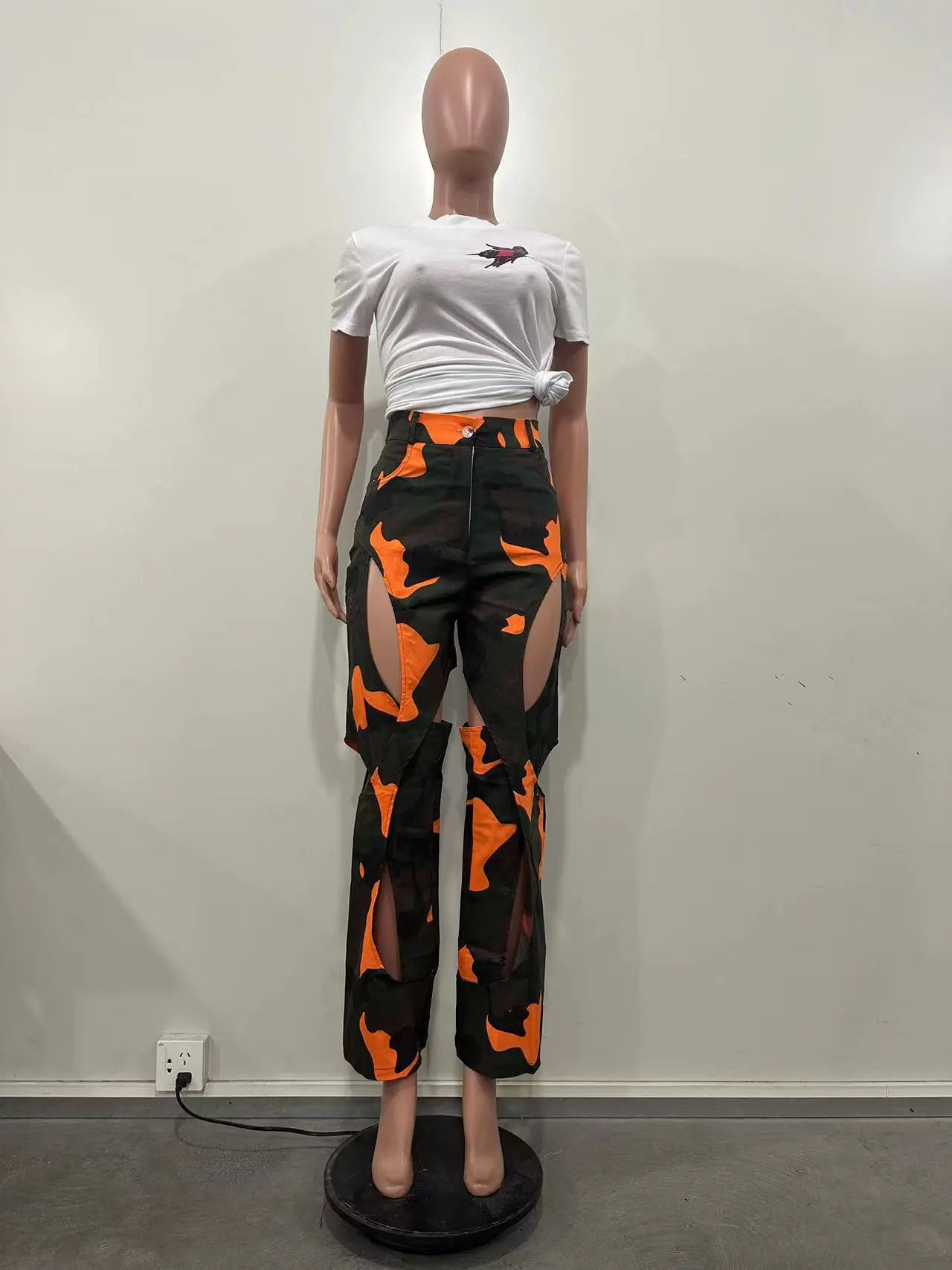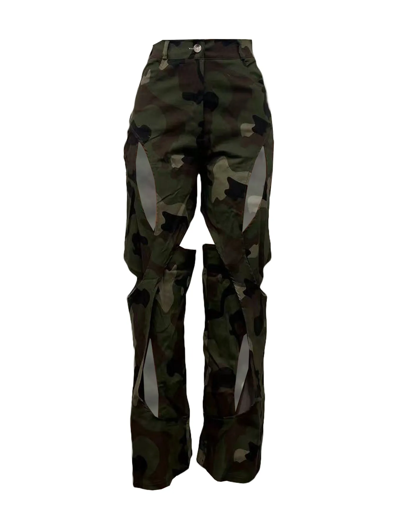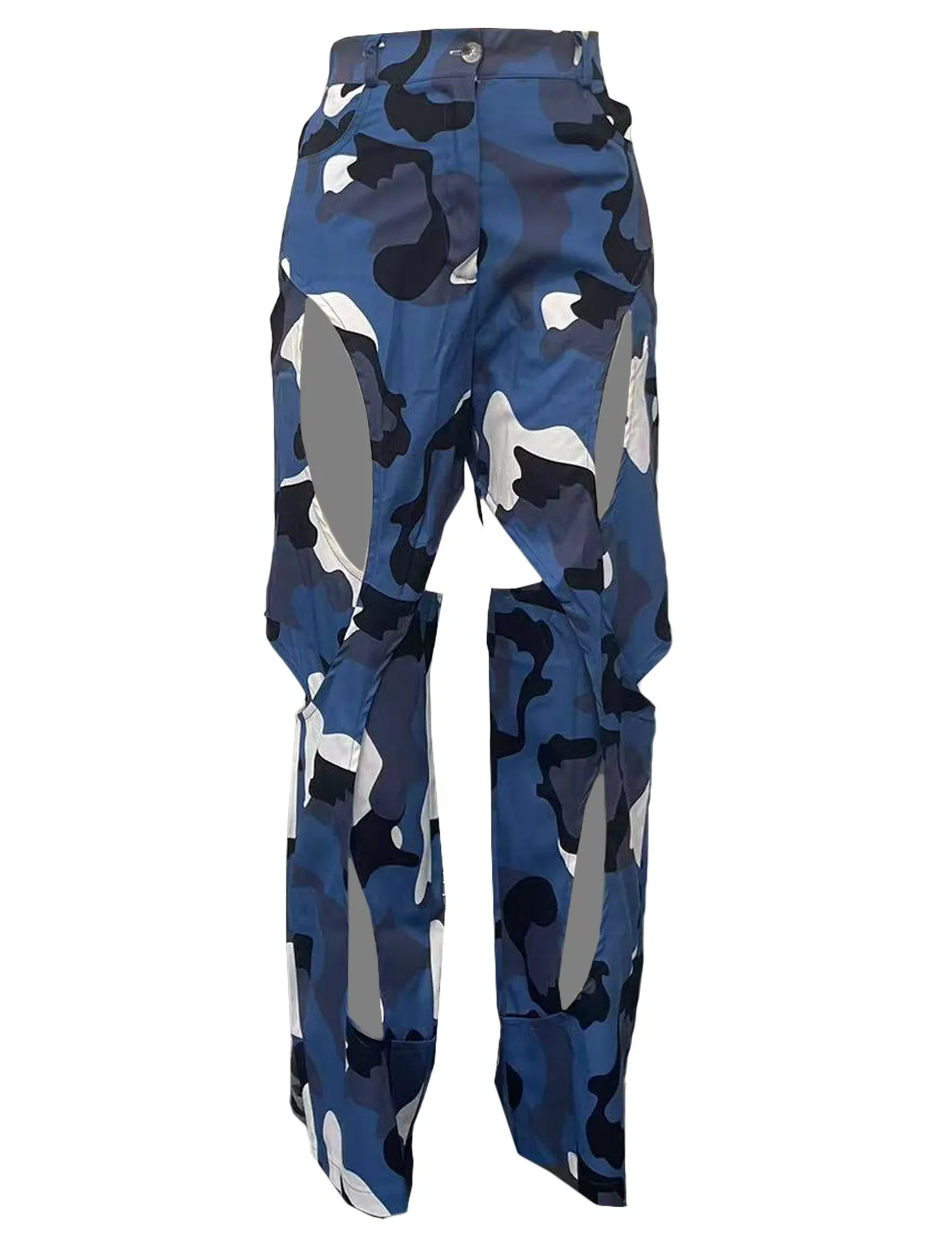 Fashion Digital HD Printing Hole Cross Straight-leg Overalls