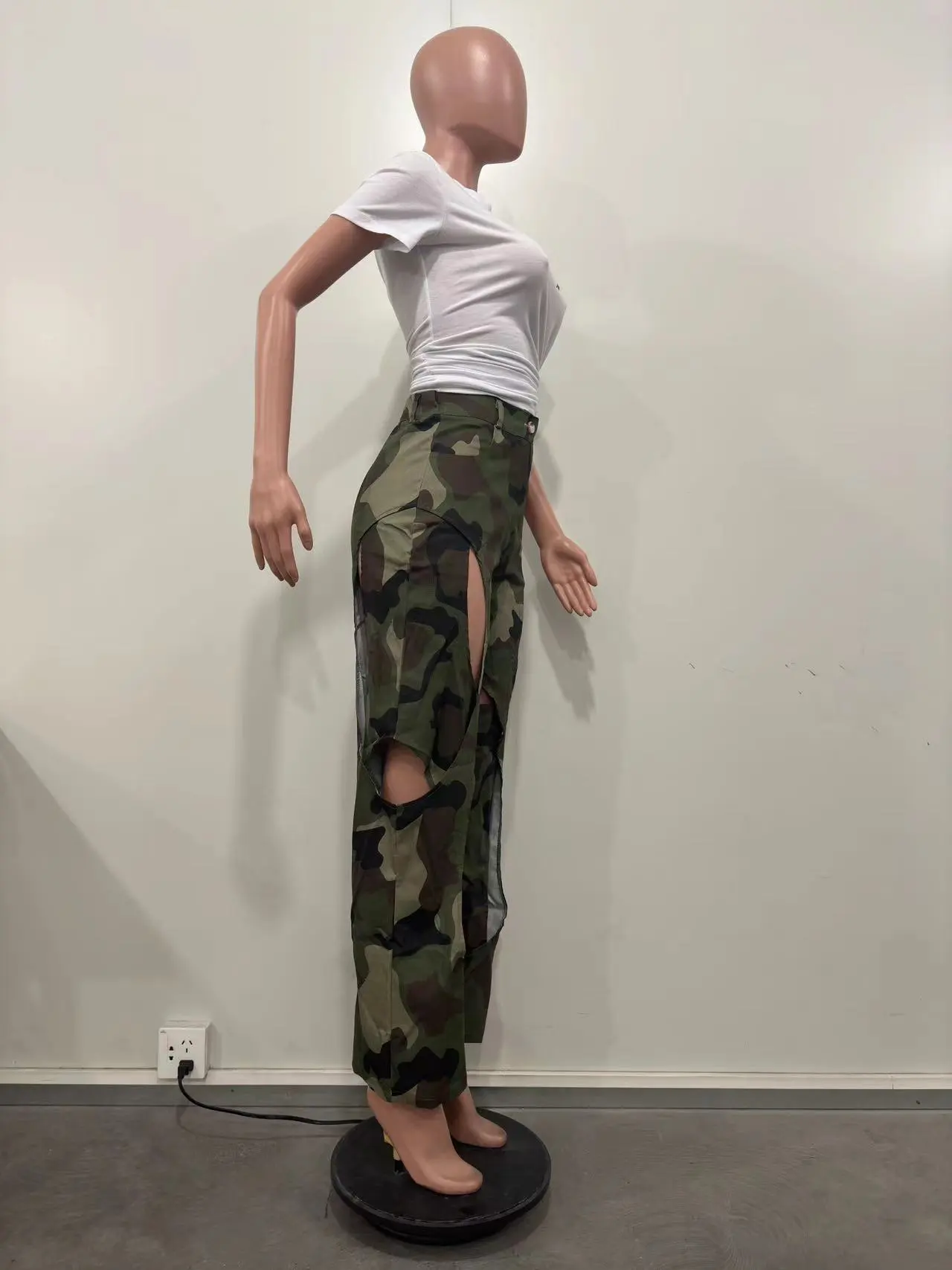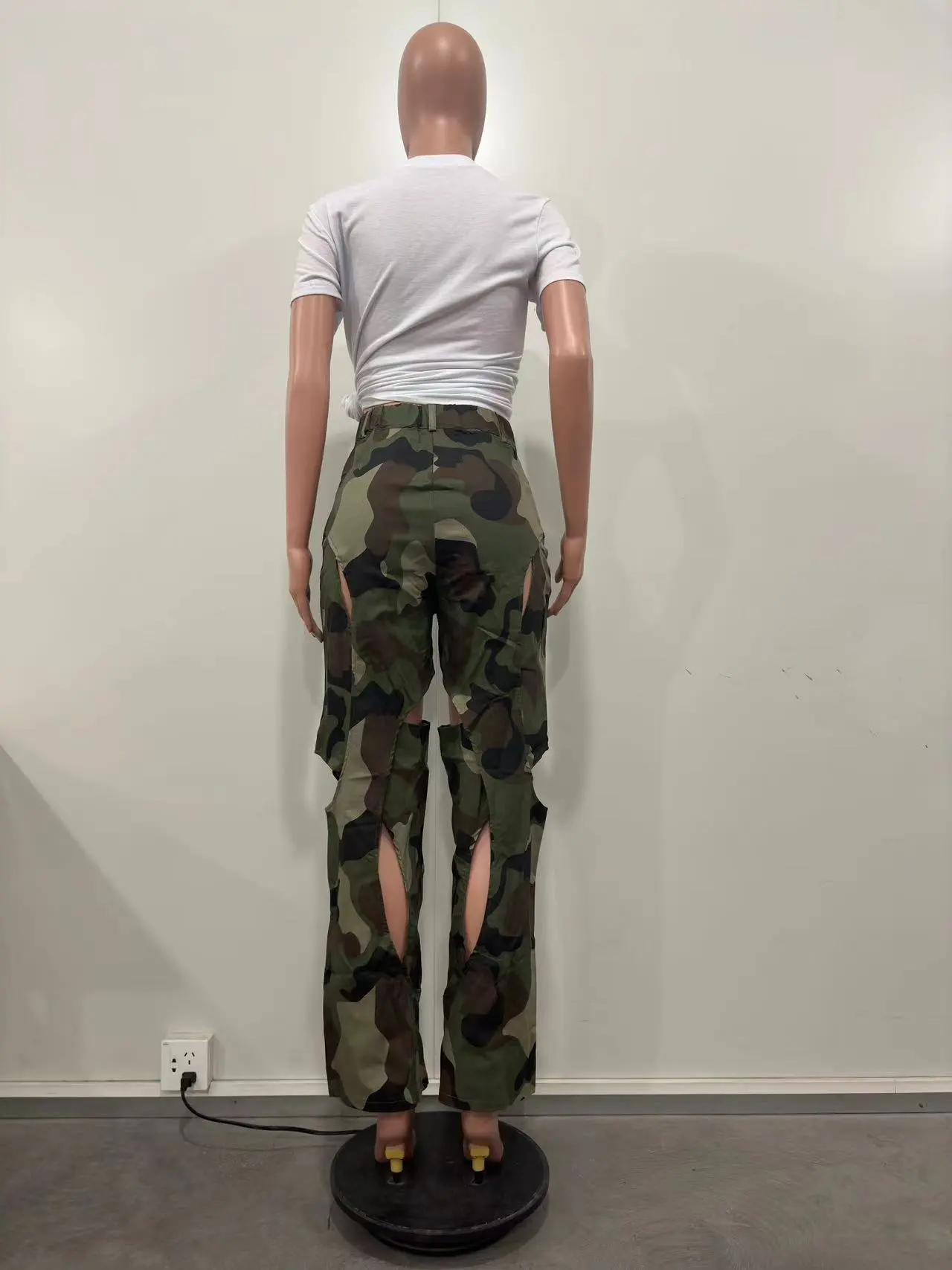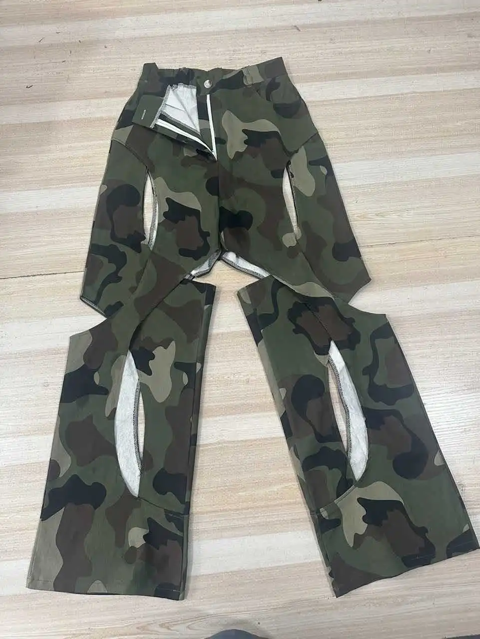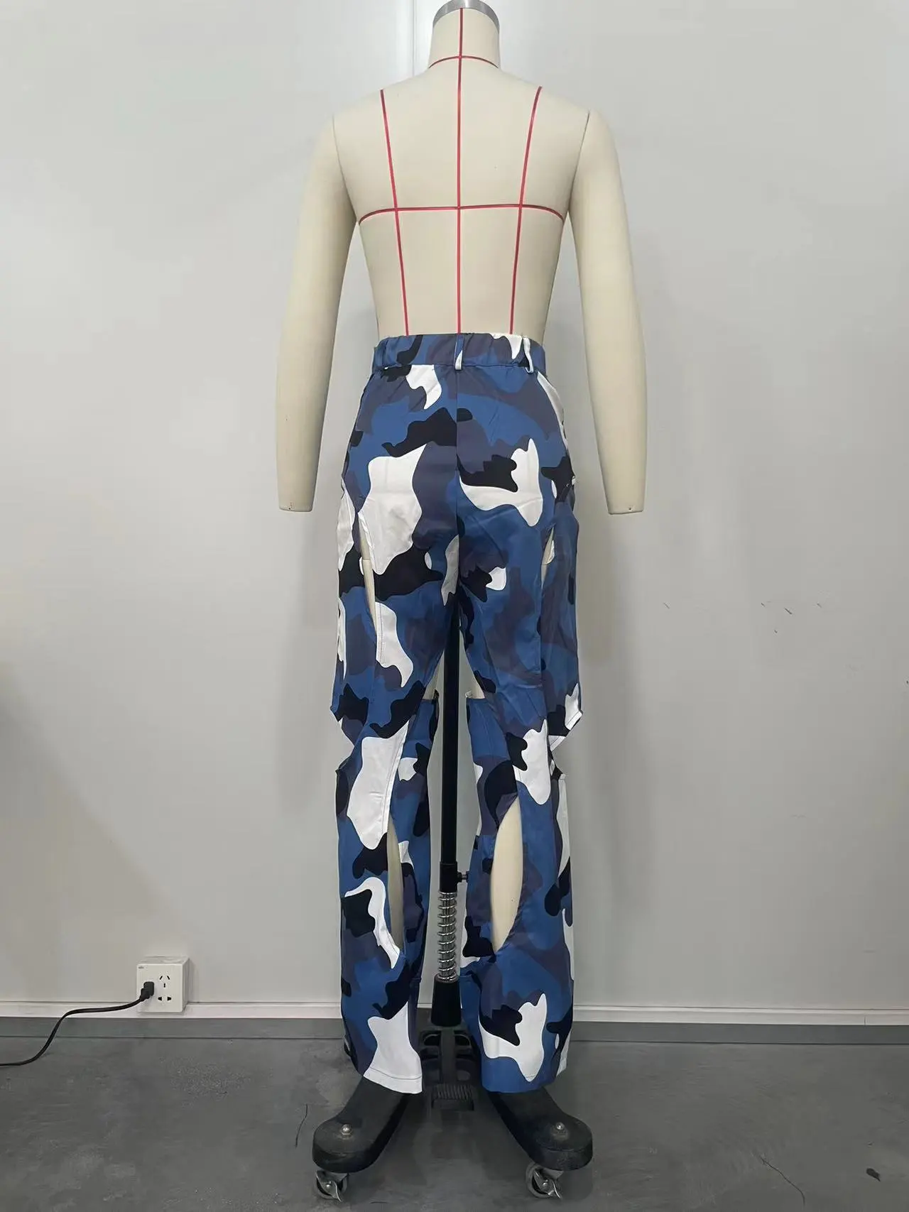 Fashion Digital HD Printing Hole Cross Straight-leg Overalls