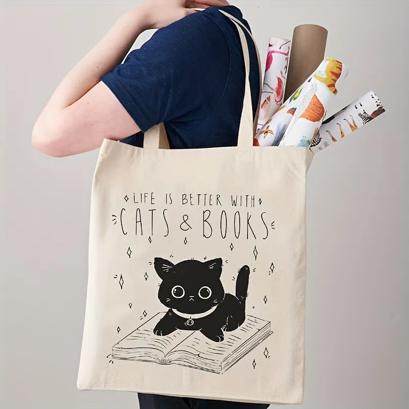 The Fashion Durable One Shoulder Cat and Book Large Capacity Canvas Bag is a charming blend of functionality and personality. Designed for cat lovers and book enthusiasts, this bag features a playful print, durable materials, and a spacious design that makes it perfect for shopping, work, school, or casual outings. Show off your unique style while keeping your essentials organized and secure.