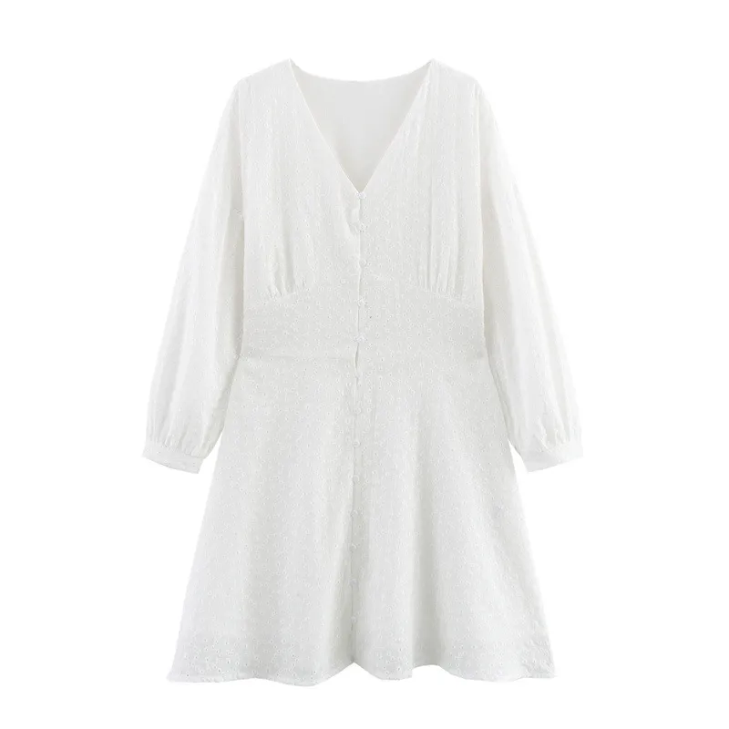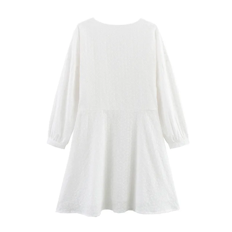 Crafted from high-quality fabric, the dress features a hollow embroidery pattern that adds a touch of artistry to the piece. The dress’s elegant European and American style ensures you stand out, offering a mix of traditional craftsmanship and contemporary flair. Its mini length gives it a modern edge while maintaining an air of sophistication, making it the perfect choice for stylish women who want to leave a lasting impression.